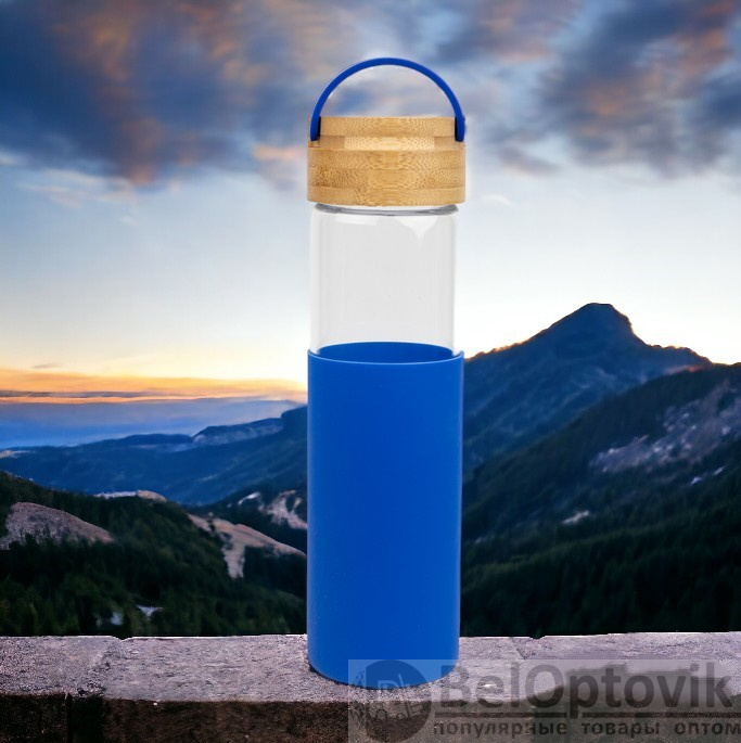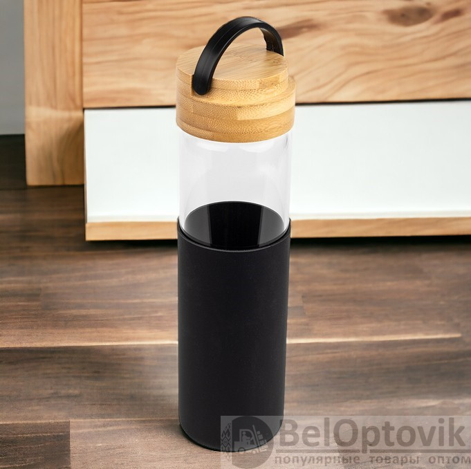 Купить Бутылка стеклянная с силиконовой манжетой и бамбуковой крышкой Glass 500 мл. / Термобутылка на нашем сайте можно ОПТОМ от 10 шт. или меньше, если Вы покупаете у нас и другие товары (сборный заказ).
