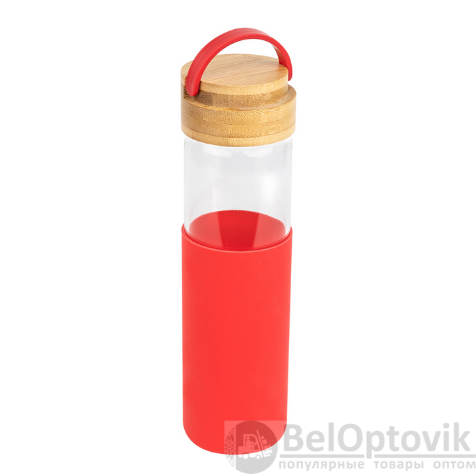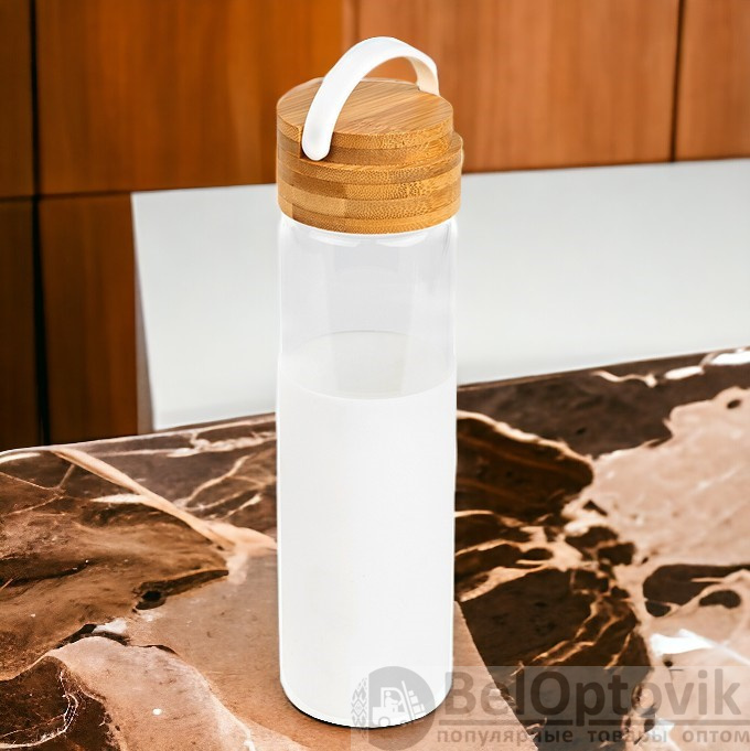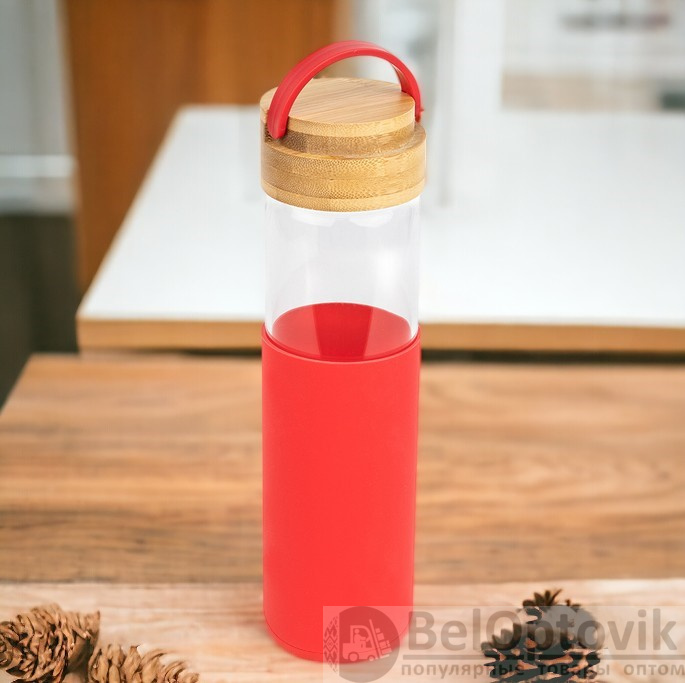 Почему купить Бутылка стеклянная с силиконовой манжетой и бамбуковой крышкой Glass 500 мл. / Термобутылка оптом выгодно у нас: