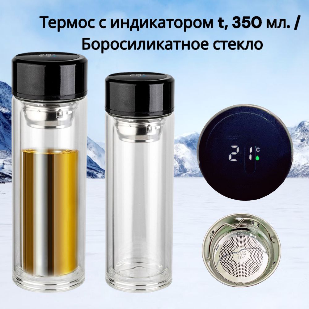 Что такое Стеклянный термос "Magic" с индикатором температуры и ситечком 350 мл. / Бутылка из боросиликатного стекла
