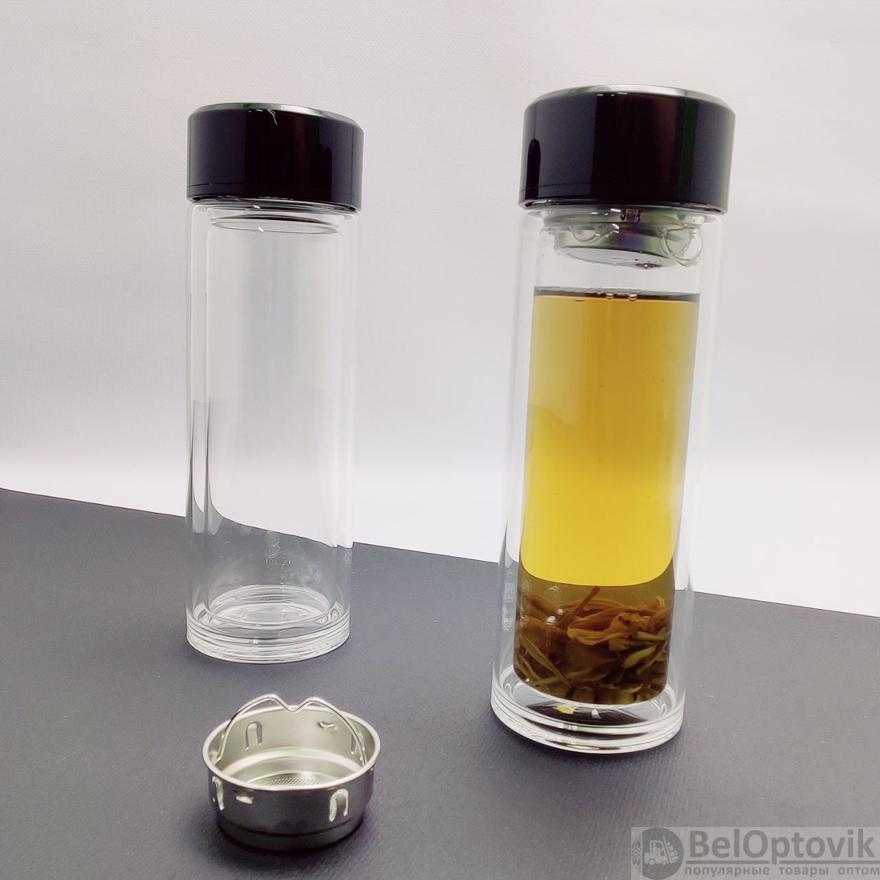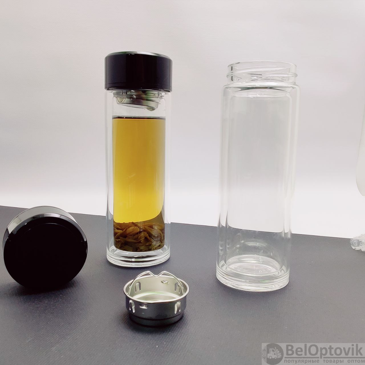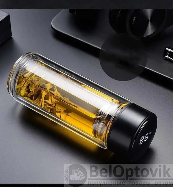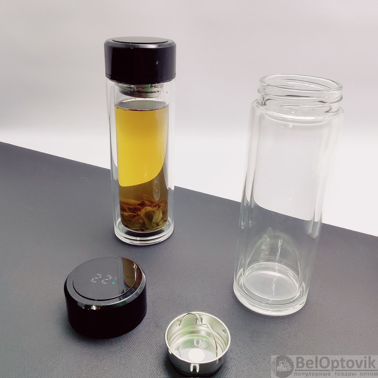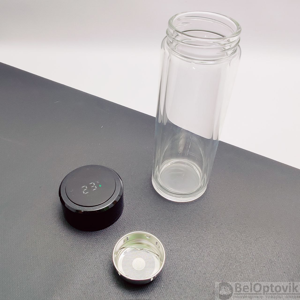 Стеклянный термос Magic с индикатором температуры и ситечком 350 мл. / Бутылка из боросиликатного стекла– 1 шт.;