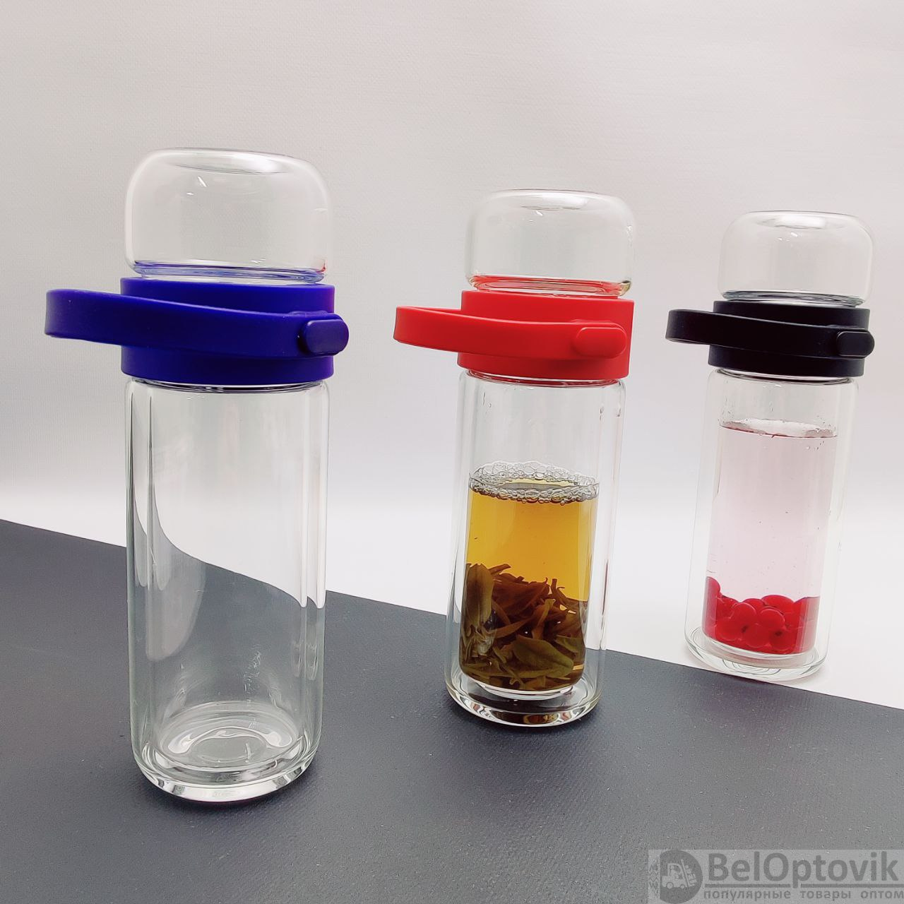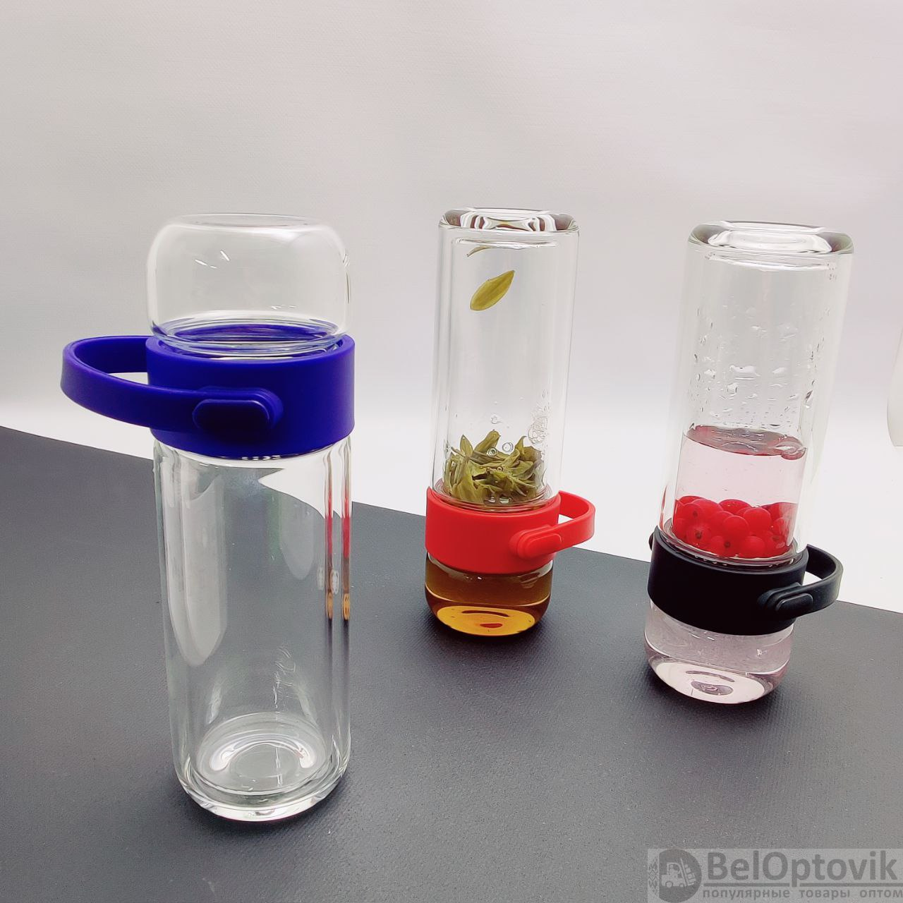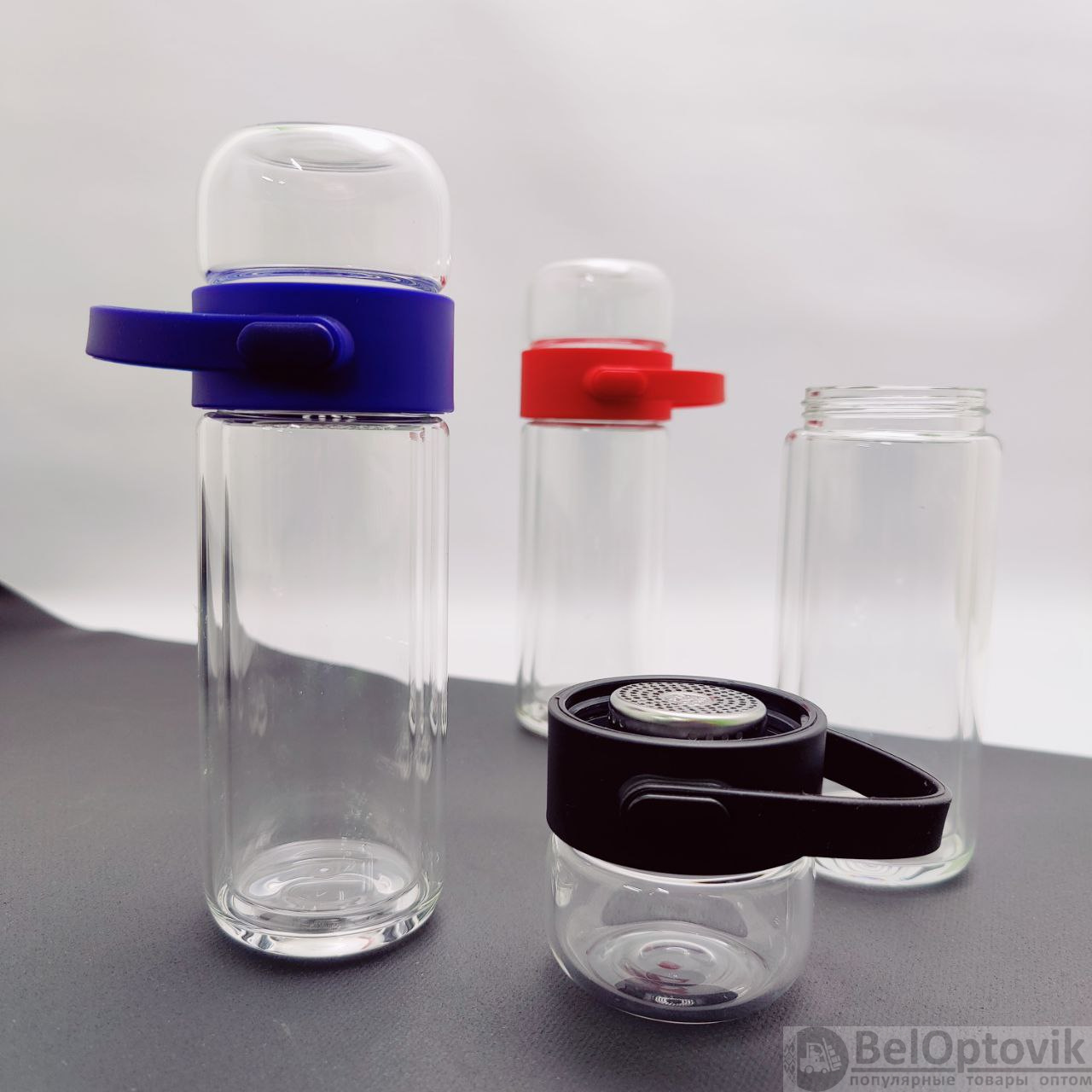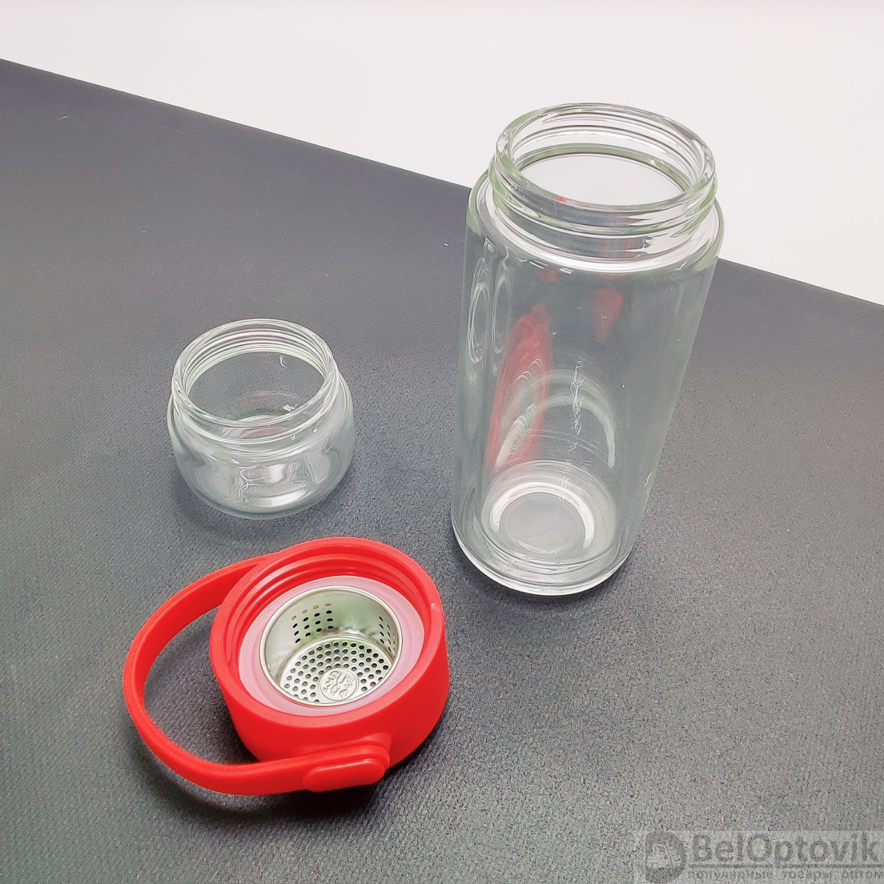 Купить Стеклянная бутылка - термос UNIQUE с ситечком 370 мл. / Двойные стенки, силиконовая ручка на нашем сайте можно ОПТОМ от 20 шт. или меньше, если Вы покупаете у нас и другие товары (сборный заказ).