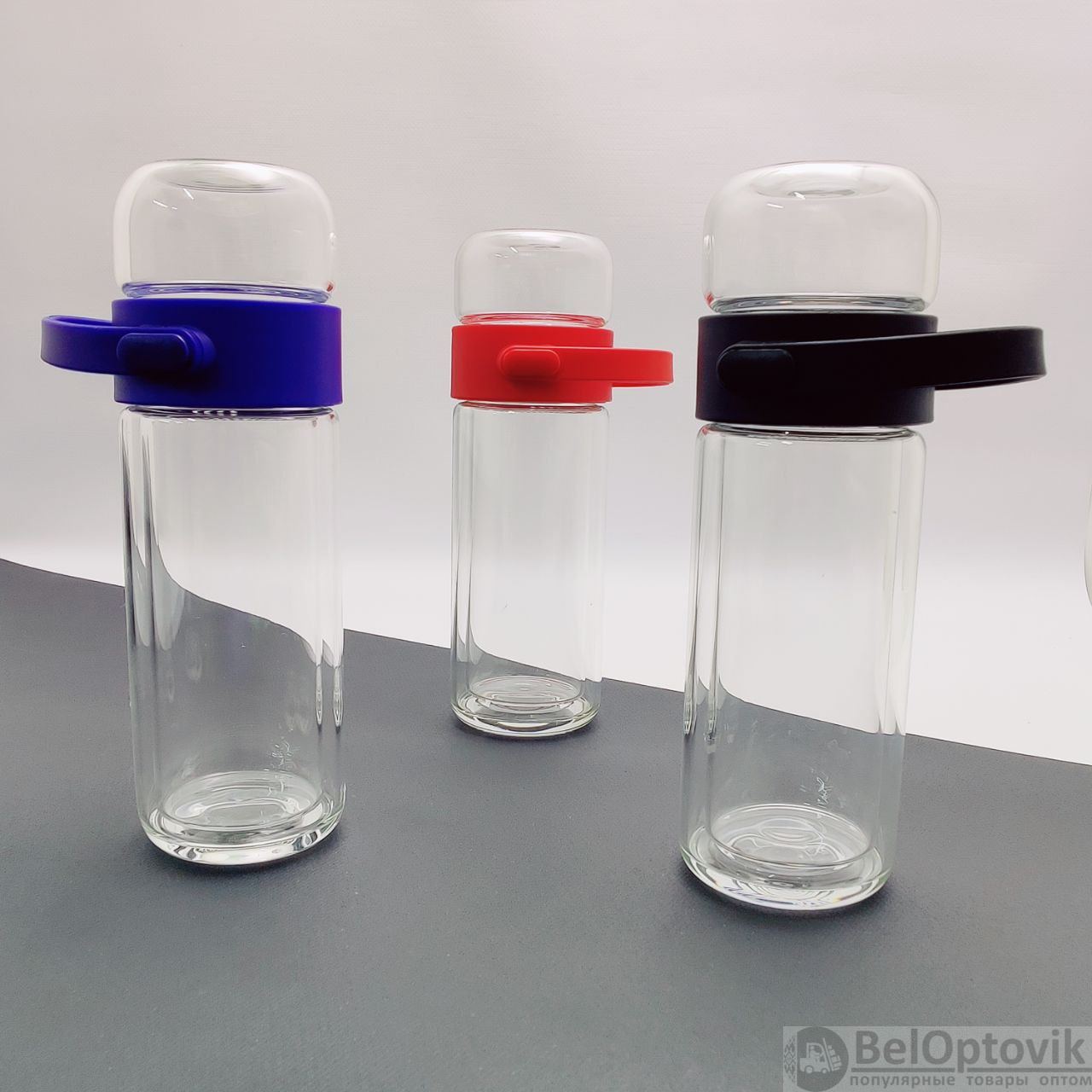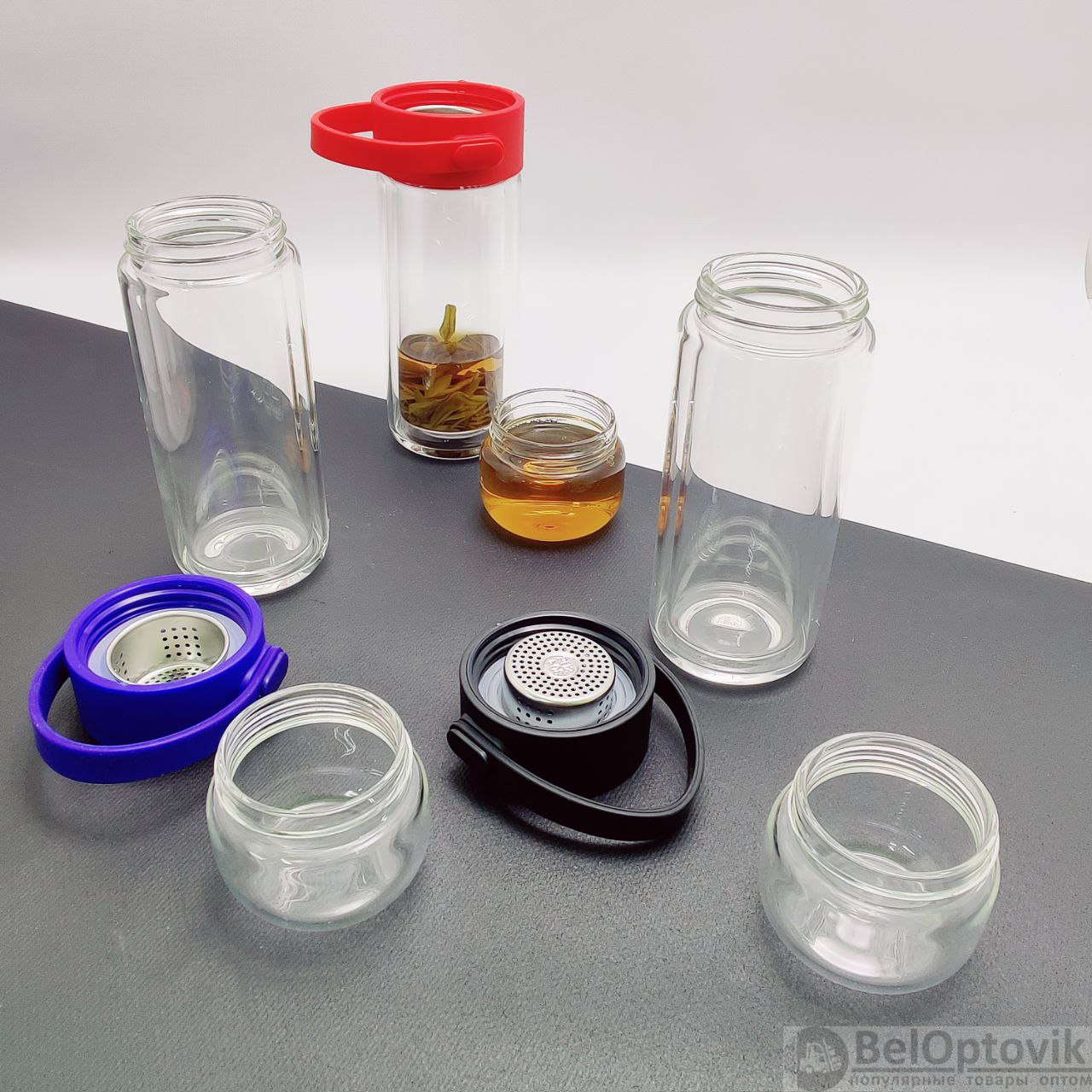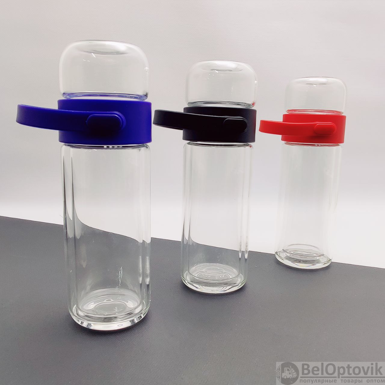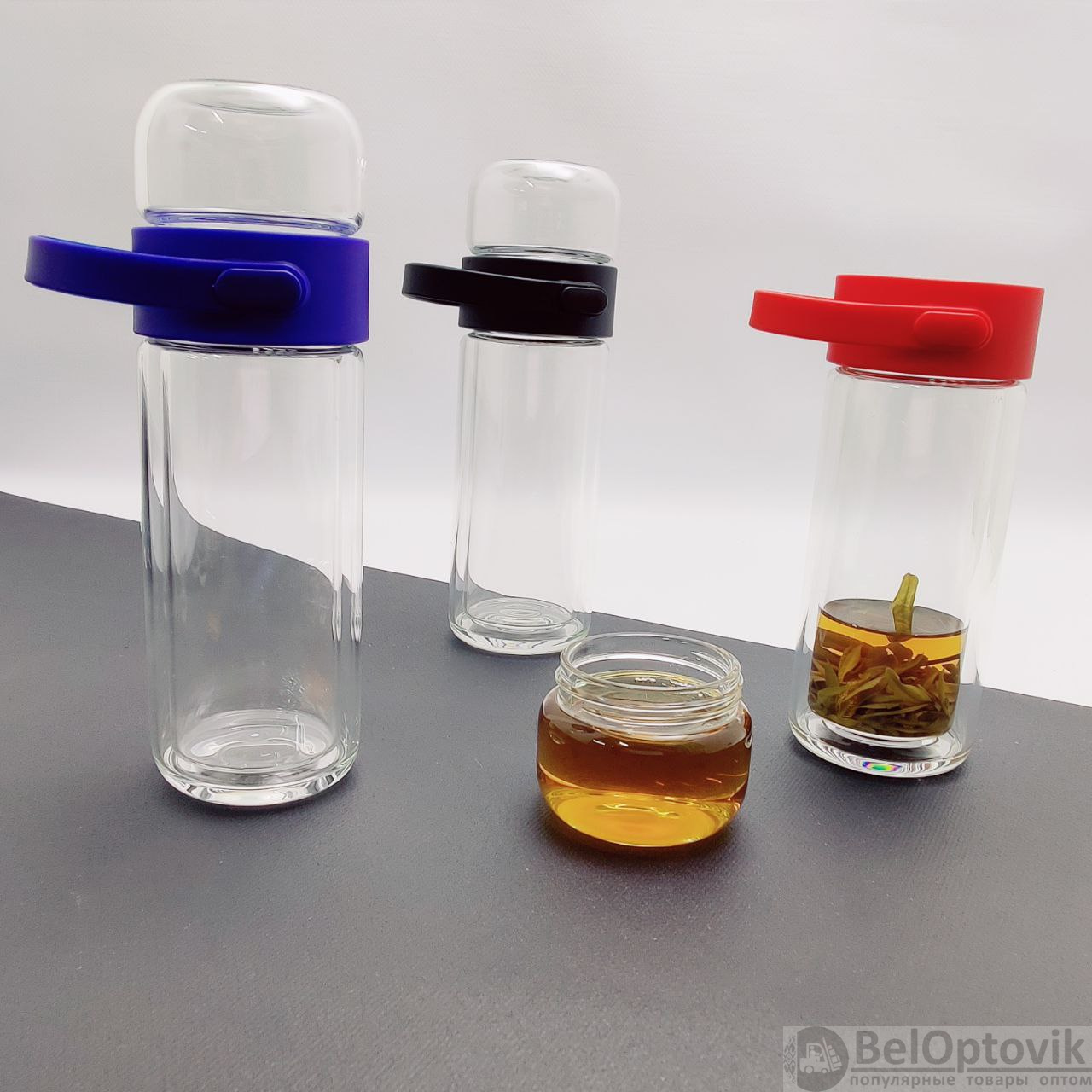 Купить Стеклянная бутылка - термос UNIQUE с ситечком 370 мл. / Двойные стенки, силиконовая ручка на нашем сайте можно ОПТОМ от 20 шт. или меньше, если Вы покупаете у нас и другие товары (сборный заказ).