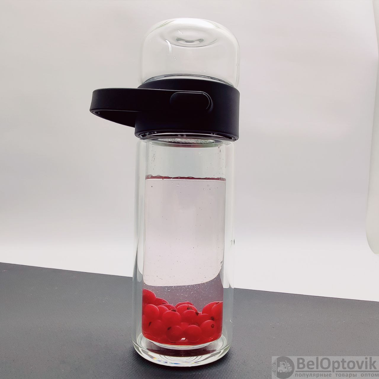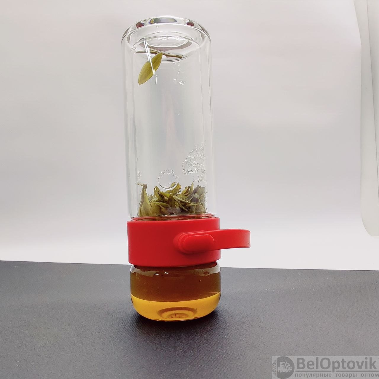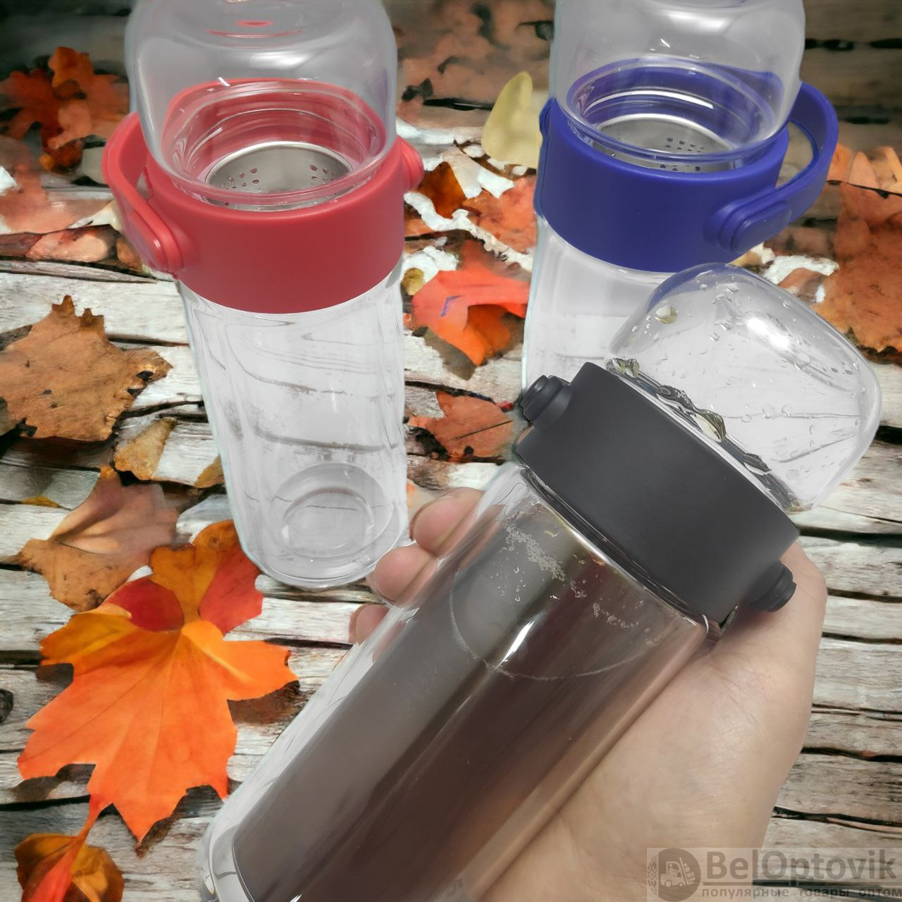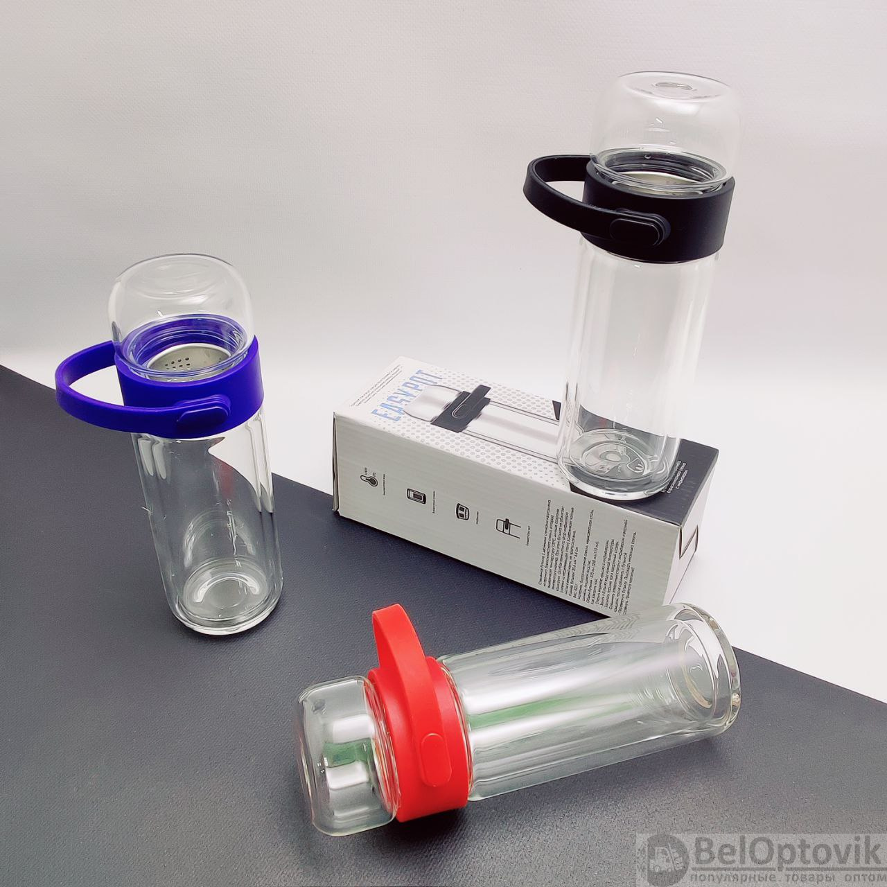 Купить Стеклянная бутылка - термос UNIQUE с ситечком 370 мл. / Двойные стенки, силиконовая ручка на нашем сайте можно ОПТОМ от 20 шт. или меньше, если Вы покупаете у нас и другие товары (сборный заказ).