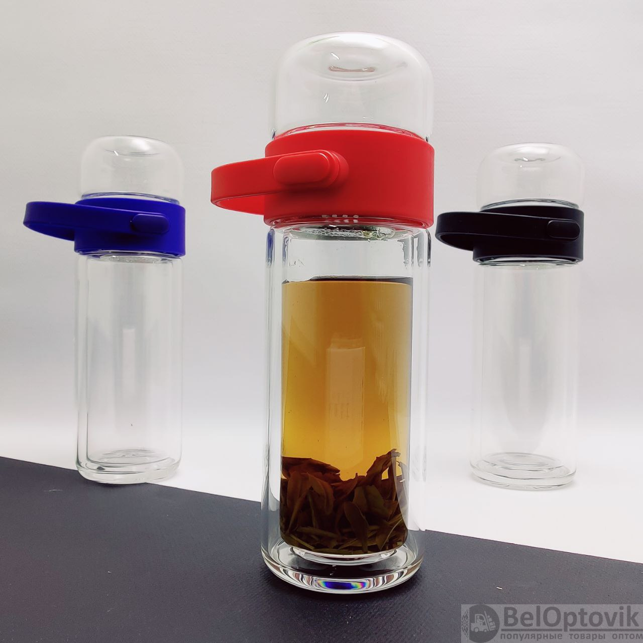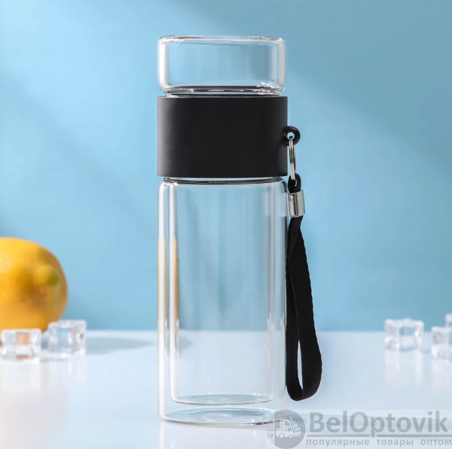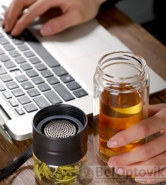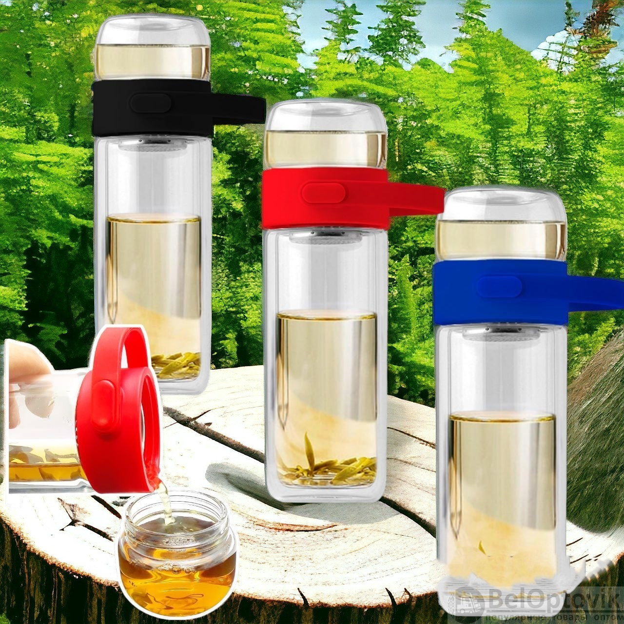 Эта стильная, но практичная стеклянная термобутылка идеально подходит для людей любящих чай, она поможет наслаждаться любимым напитком, быть в тонусе, поддерживать водный баланс на работе, учебе, прогулке или в путешествии. Два яруса бутылочки разделены сеткой-ситечком, что позволяет легко заварить листовой чай, а двойные стенки на долго сохранят его температуру и позволяют без опасений держать горячую бутылку в руке- не обжигает руки.