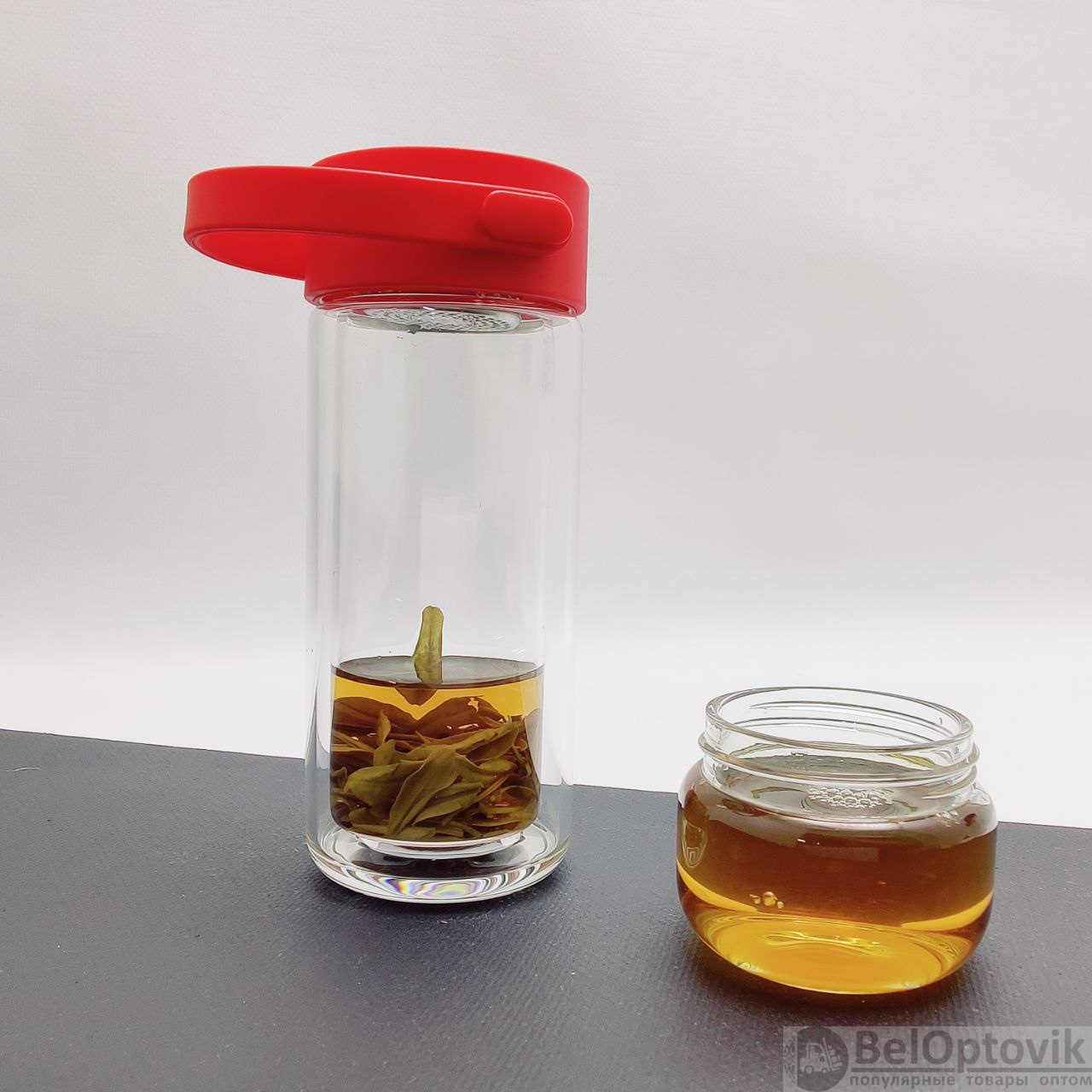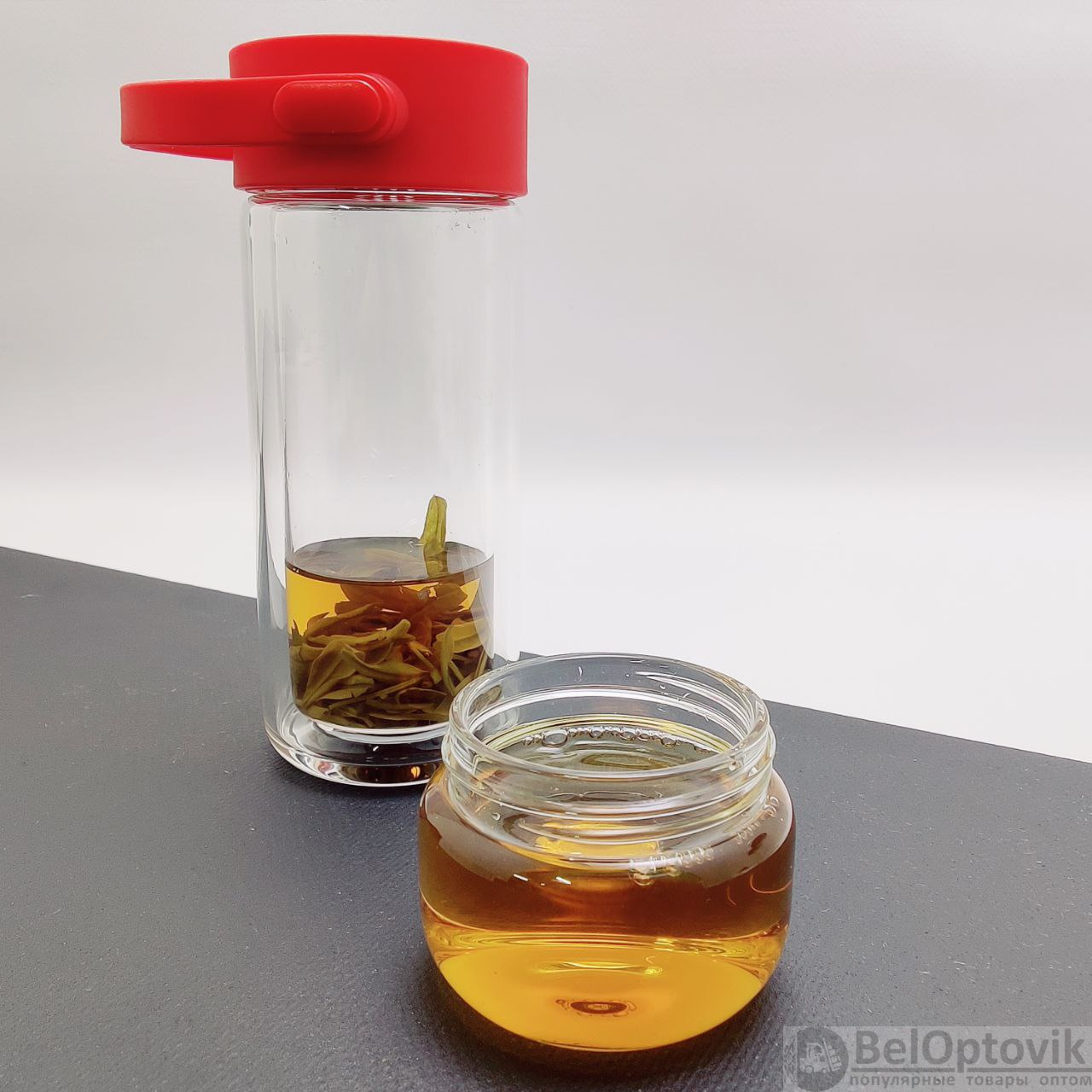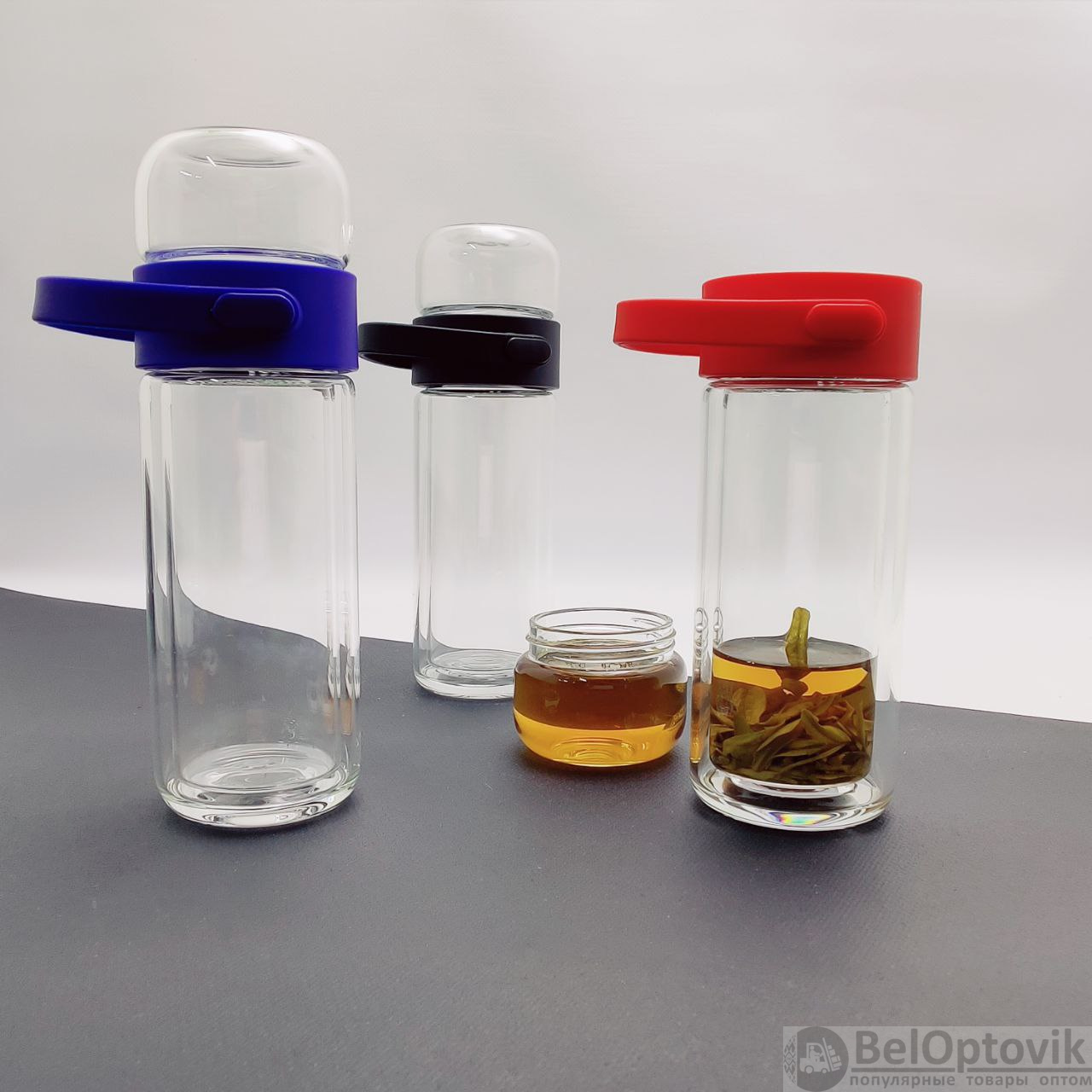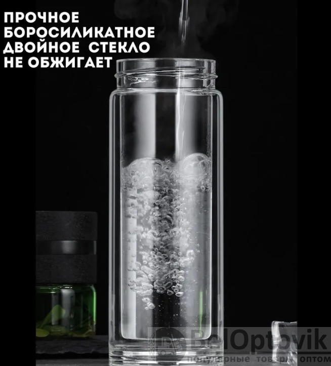 Эта стильная, но практичная стеклянная термобутылка идеально подходит для людей любящих чай, она поможет наслаждаться любимым напитком, быть в тонусе, поддерживать водный баланс на работе, учебе, прогулке или в путешествии. Два яруса бутылочки разделены сеткой-ситечком, что позволяет легко заварить листовой чай, а двойные стенки на долго сохранят его температуру и позволяют без опасений держать горячую бутылку в руке- не обжигает руки.