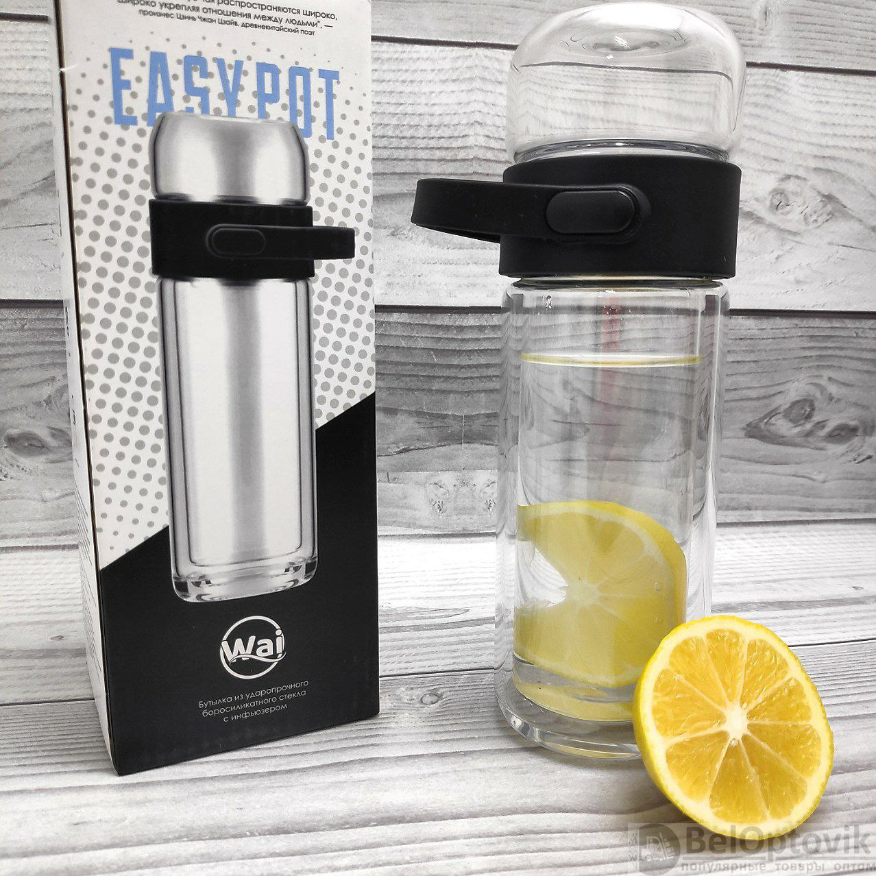 - Бутылка изготовлена из боросиликатного стекла, ситечко из нержавеющей стали и пищевого силикона.
