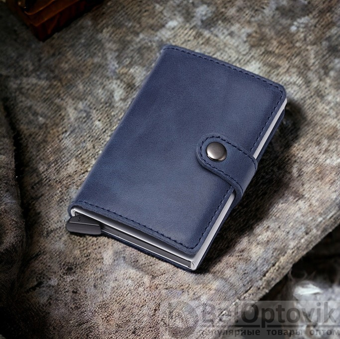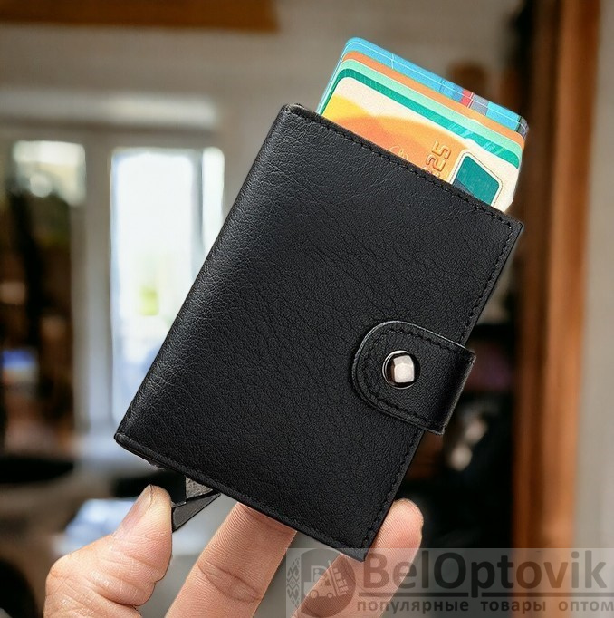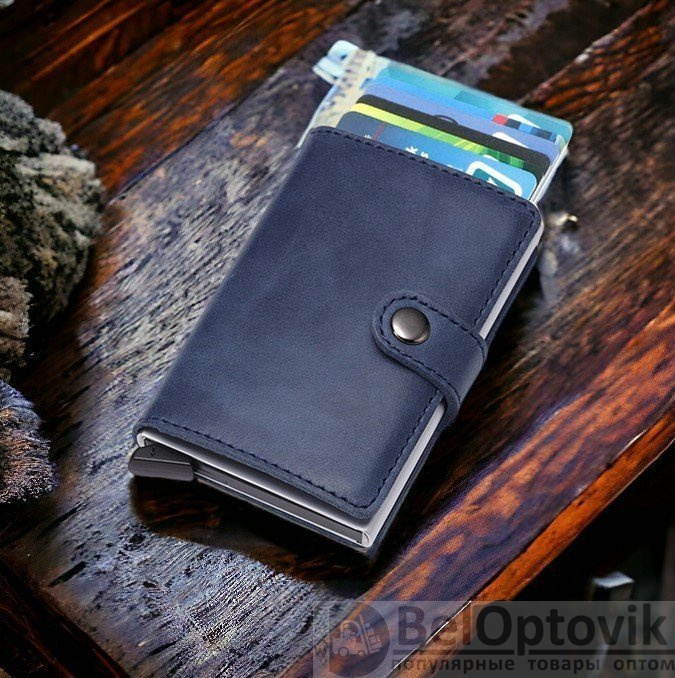 Почему купить Держатель банковских карт Bakara из экокожи и алюминия 51х38х34см. / Картхолдер для кредитных карт на кнопке оптом выгодно у нас: