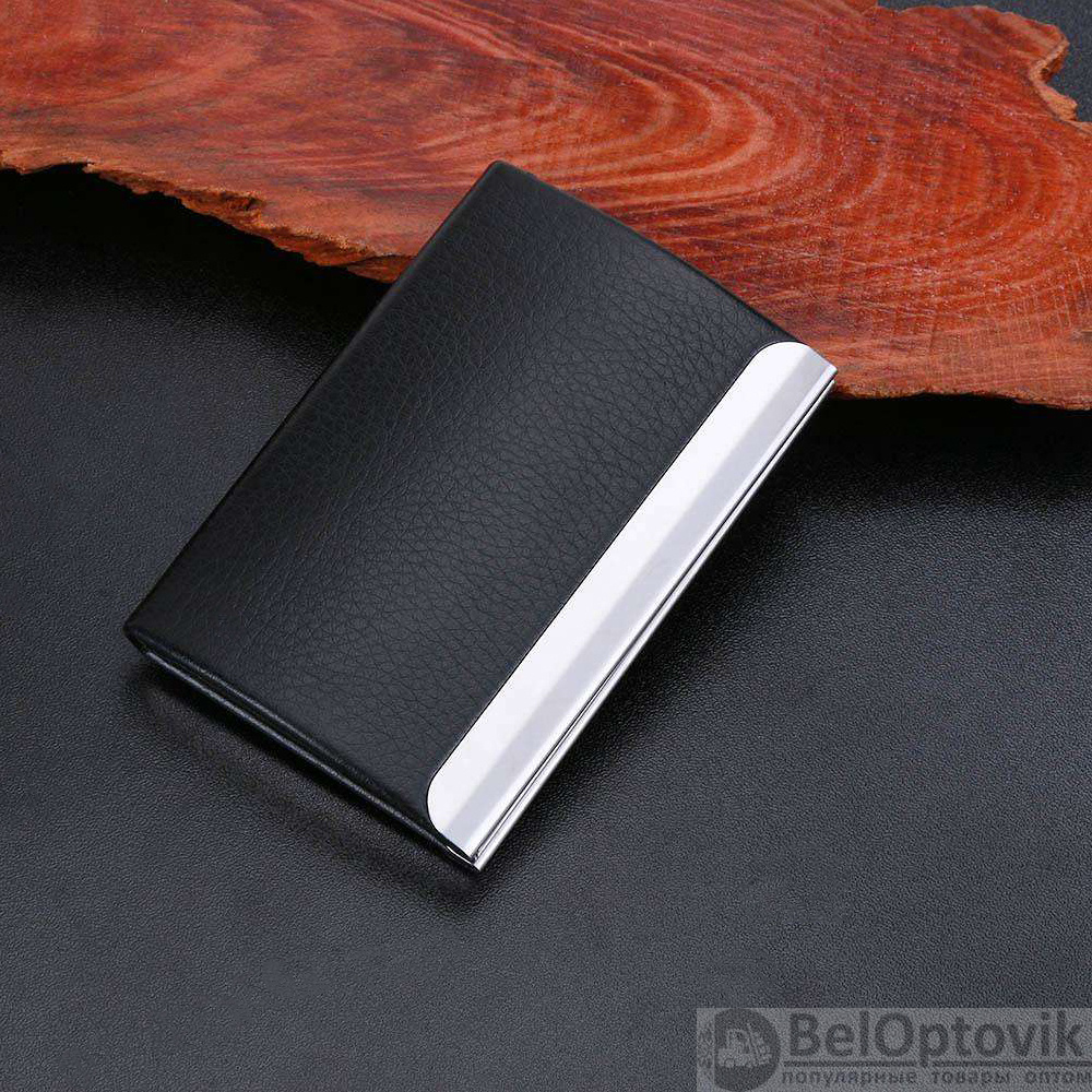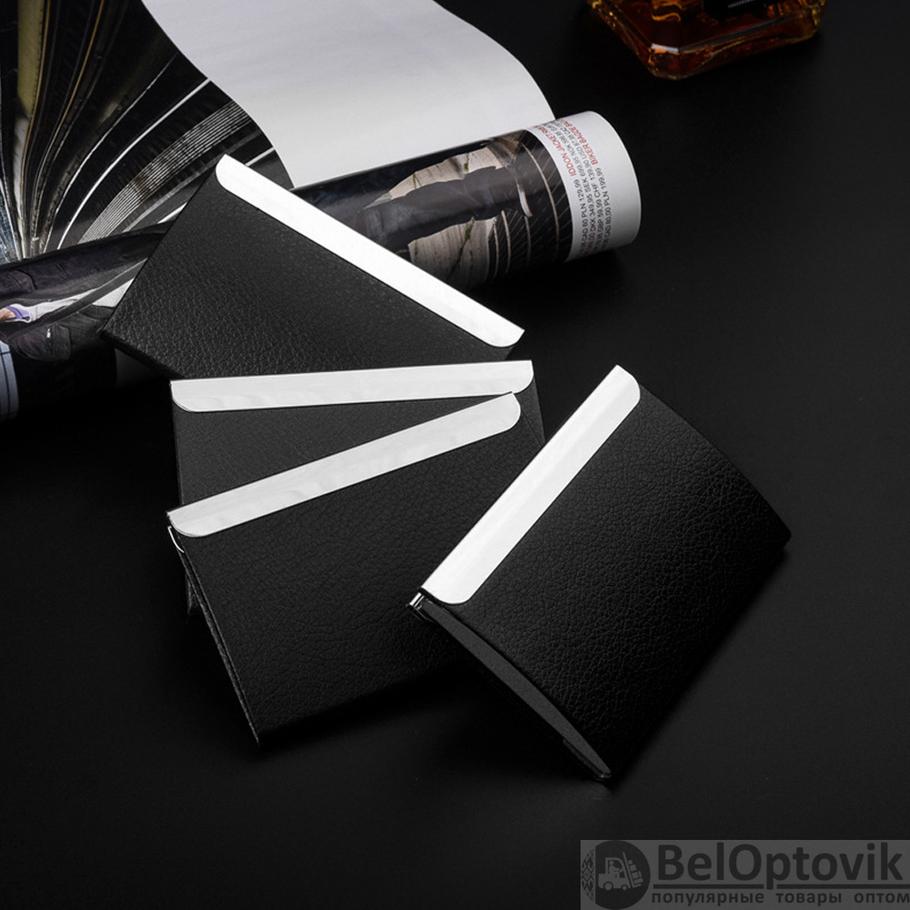 Картхолдер — это современная и практичная визитница для пластиковых карт. Кредитница используется как кошелек для карт, визиток, пропусков, дисконтных карт, социальных карт и других разновидностей карточек. Никаких лишний отделов, усложнения конструкции и больших габаритов- визитница выглядит классически, имеет одно вместительное отделение, презентабельное кожаное PU покрытие и закрывается силой притяжения (магнит).