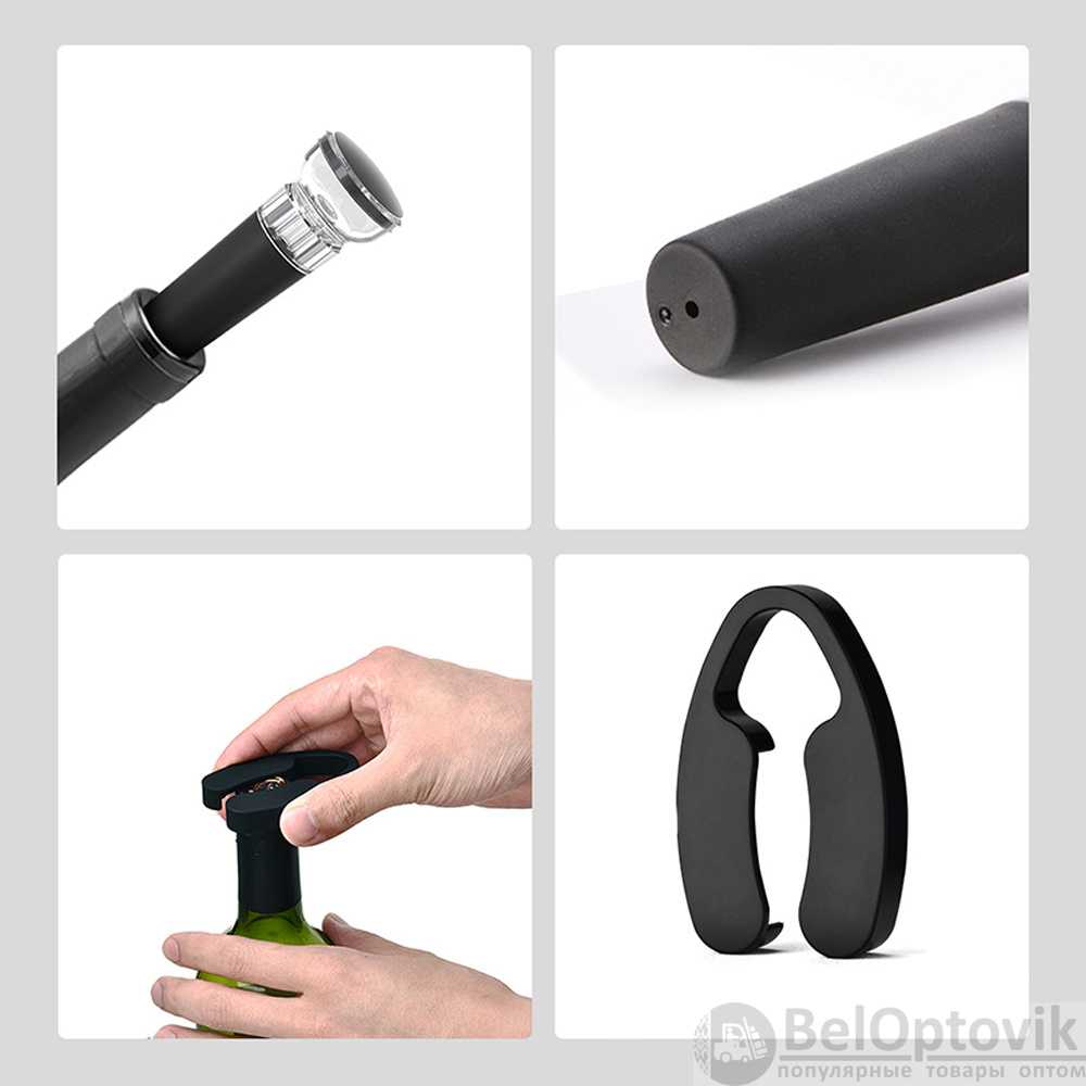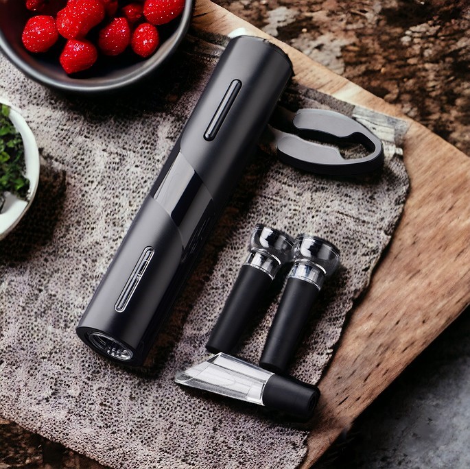 Набор станет незаменимым помощником на праздниках и мероприятиях, когда необходимо быстро открыть большое количество бутылок. Открыть бутылку с электроштопором очень просто. Достаточно выровнять бутылку по вертикали, плотно прижать штопор к бутылке и нажать на кнопку.
