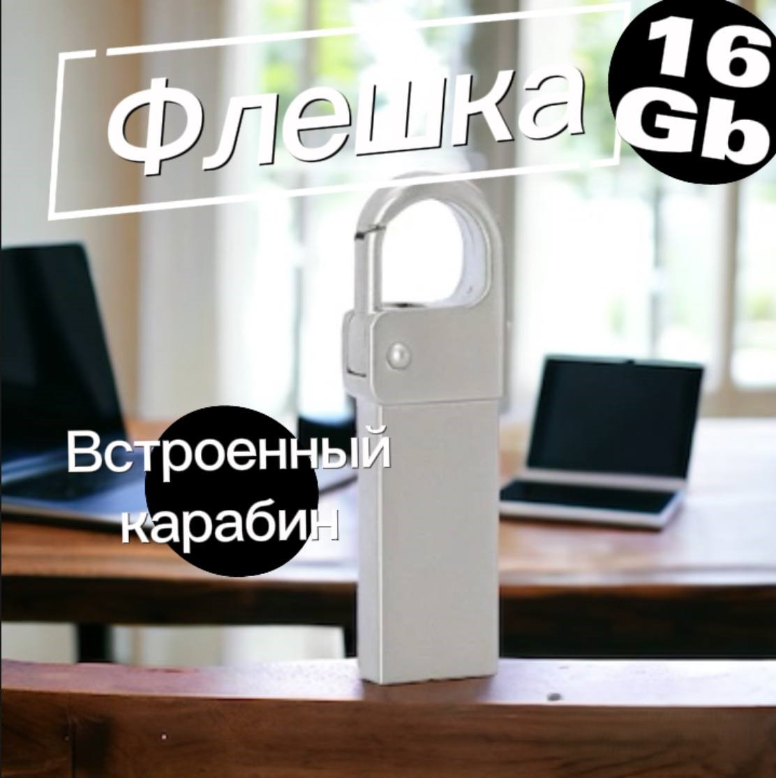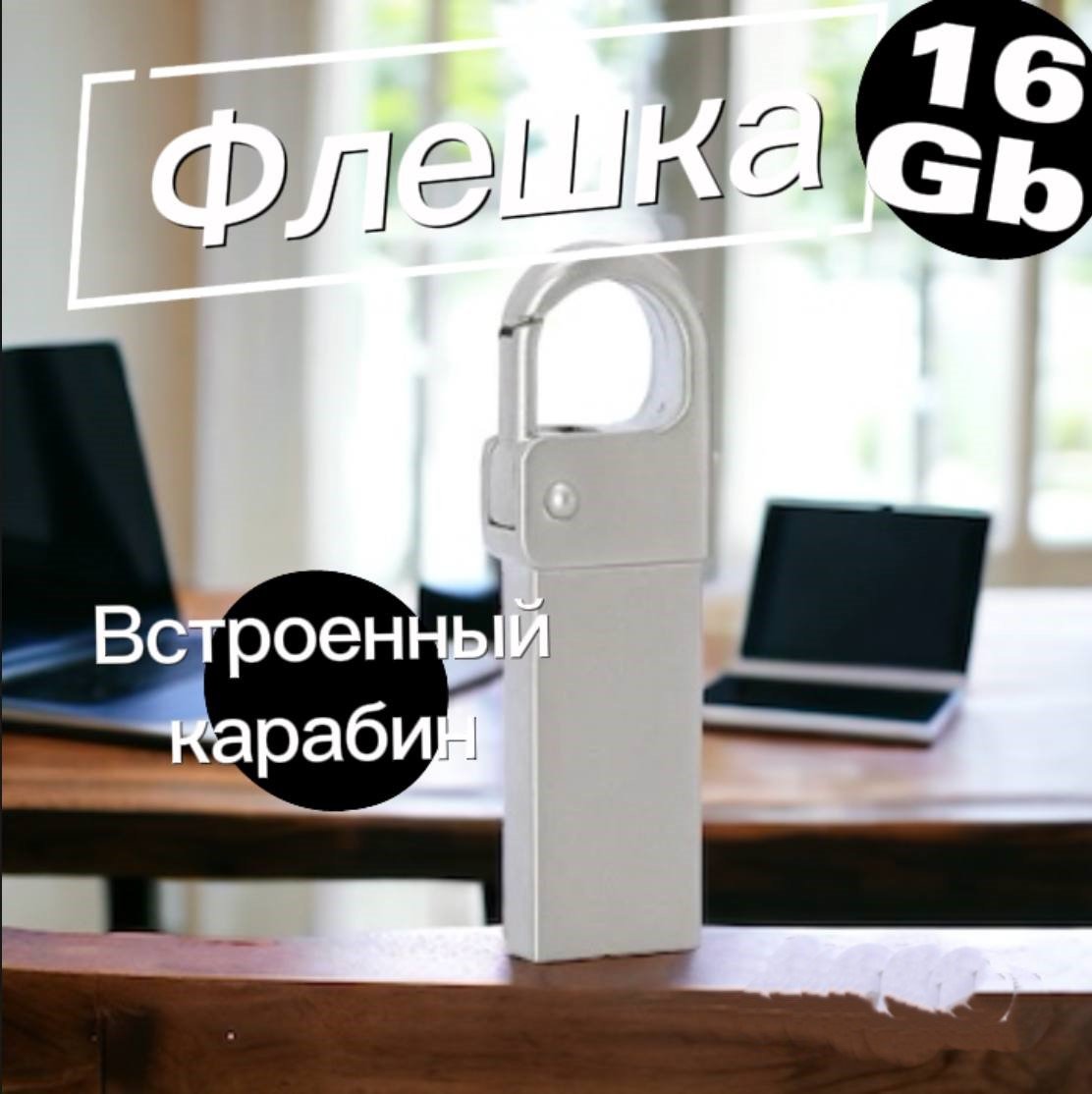 Флешка с карабином 16 Гб, интерфейс USB 2.0