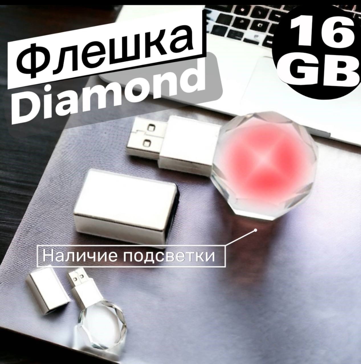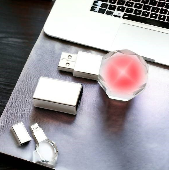 - Эстетика и индивидуальность: Флешка “Diamond” подчеркивает ваш индивидуальный стиль и вкус благодаря своему элегантному дизайну и подсветке, что делает ее не только функциональным устройством, но и стильным аксессуаром.