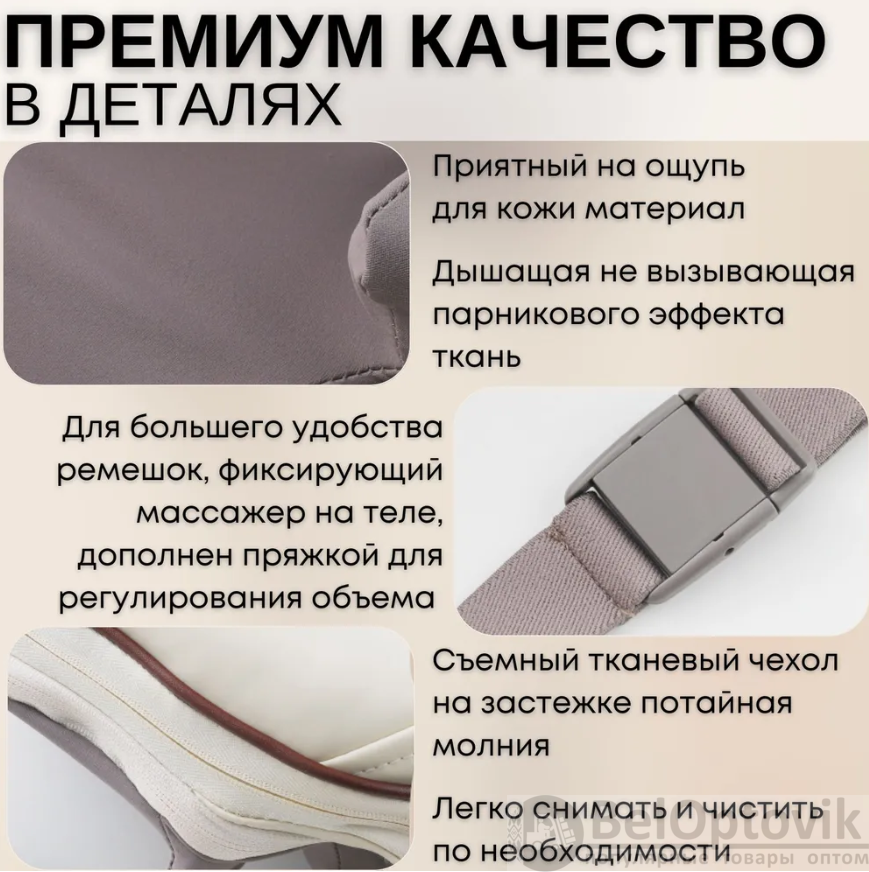 Изготовлен из высококачественной эко-кожи, надежной фурнитуры и премиального трикотажа, он идеально подходит при ежедневном использовании и оказывает физиотерапевтический, косметологический и антистресс-эффект уже с первого использования.