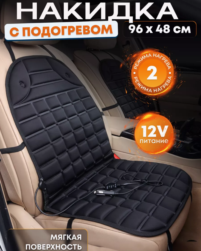 Накидка с подогревом на сиденье автомобиля 96х48см. 1 шт. (прикуриватель в комплекте) – 1 шт.;