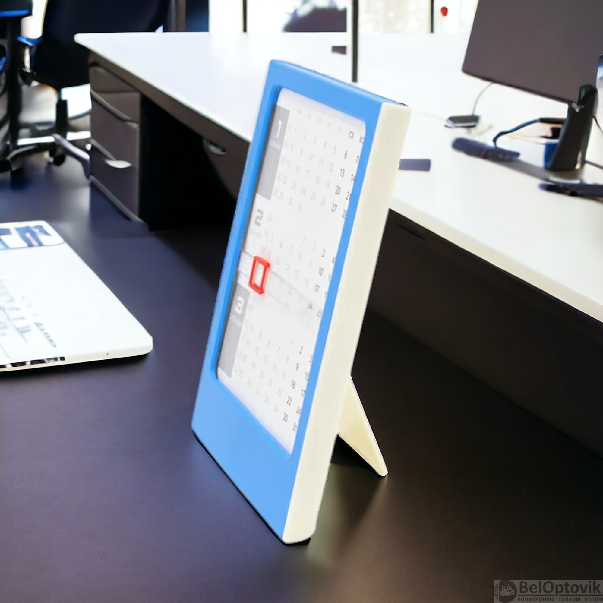 Календарная сетка имеет достаточно места для записей, а также отмечены праздничные и выходные дни, что помогает организовать время более эффективно. Вы можете легко заменять календарные блоки на новые периоды, благодаря удобной системе крепления. Настольный календарь оснащен выдвижной подставкой, которая обеспечивает устойчивость на любой поверхности, будь то офисный стол или домашняя полка. Дополнительное отверстие на задней стороне позволяет разместить календарь на стене, экономя пространство на рабочем столе.