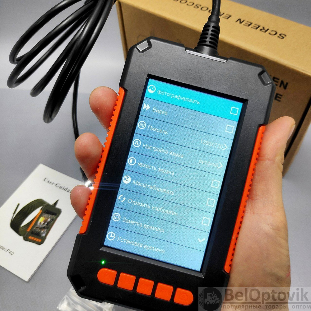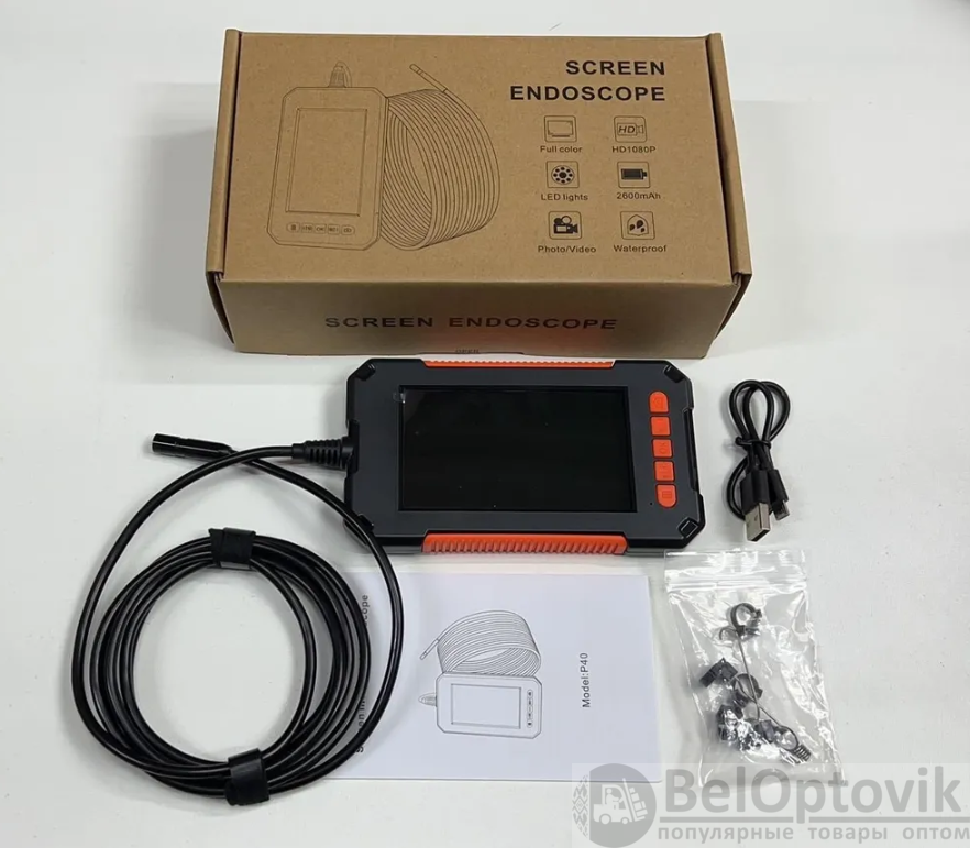 Эндоскоп Р-40 с экраном 4.3 дюйма 1080P ( длина кабеля 1,86 метра) - это устройство предназначенное для обследования внутренних полостей механизмов, сооружений, трубопроводов и т. д. Прибор включает в себя блок управления с цветным экраном 4,3" и гибкую камеру диаметром 8 мм с углом обзора в 70°, которая позволяет использовать устройство даже в труднодоступных местах. Камера имеет уровень защиты от влаги IP68 (только камера), что дает возможность опускать ее в воду. Вся полученная информация отображается на экране основного блока. Для работы в условиях плохой освещенности предусмотрена подсветка из 8 светодиодов с регулировкой освещения. Устройство оснащено встроенной аккумуляторной батареей емкостью 2600 мАч, которой достаточно для работы эндоскопа в течение до 5 часов. Управление осуществляется с помощью кнопок на корпусе (прилагается подробная инструкция).