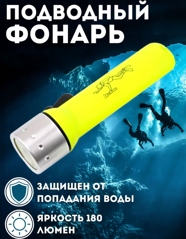 Светодиодный ручной фонарь для дайвинга, охоты и рыбалки, на батарейках 180 Люмен Flashlight for diving Shallow Light отлично подойдет для подводной охоты, для туристов, охотников и рыбаков, т.к. имеет отличную герметичность и его можно применять в любую погоду и в любых условиях.
