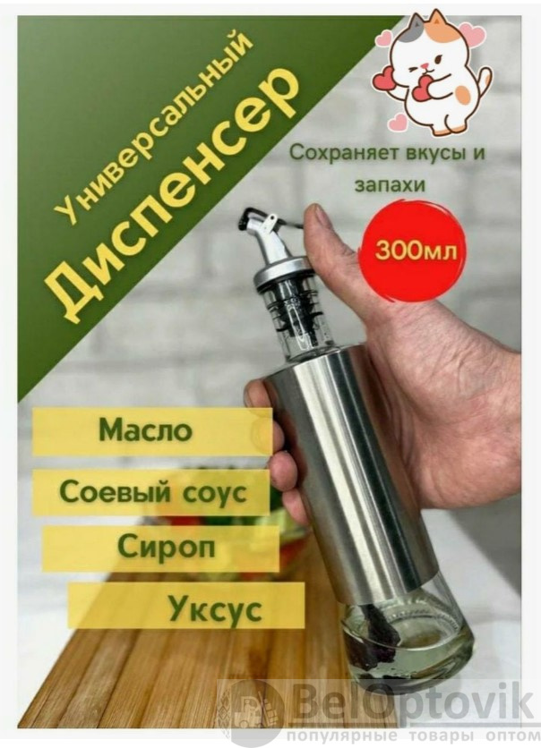 Емкость стеклянная для масла и уксуса с дозатором 300 мл. – 1 шт.;