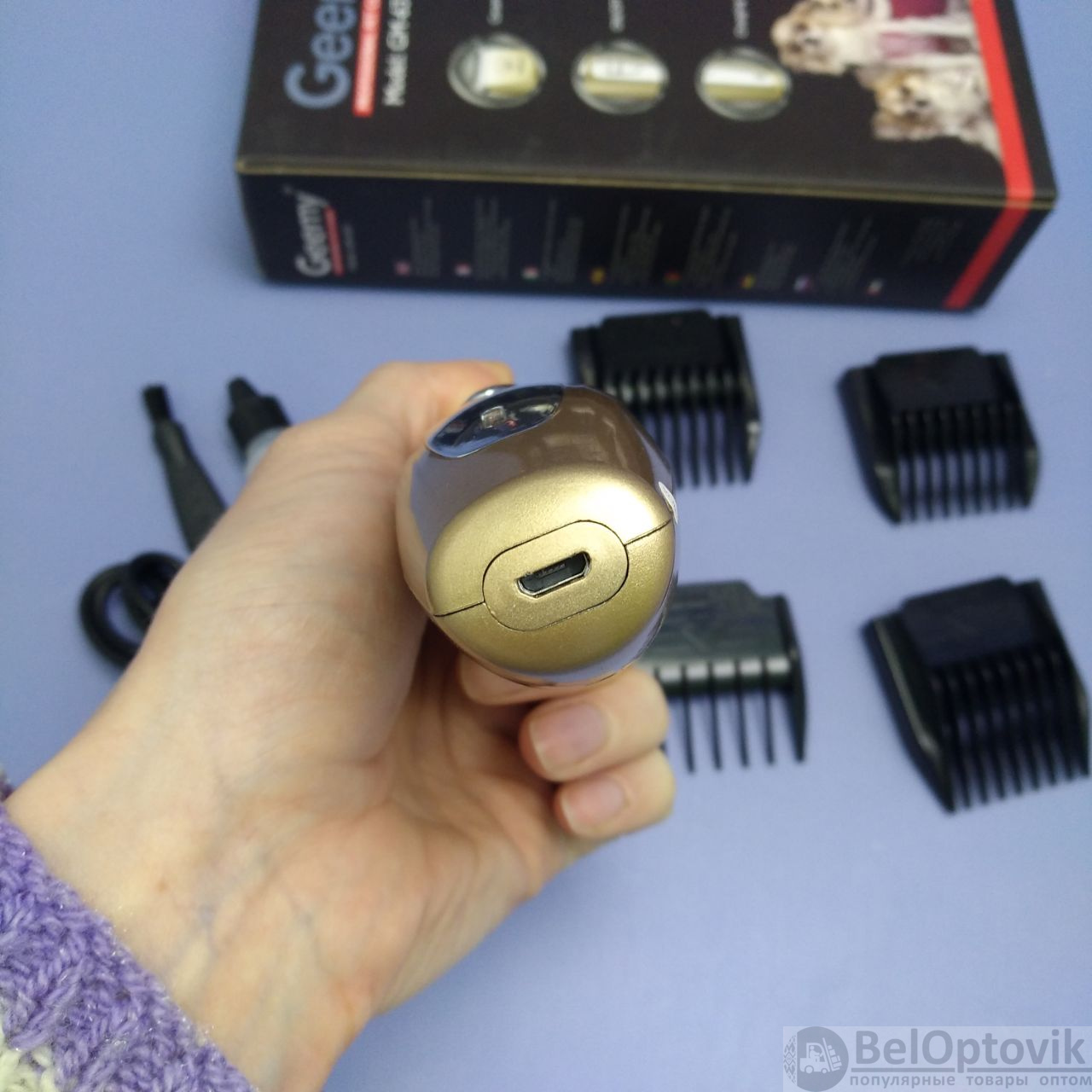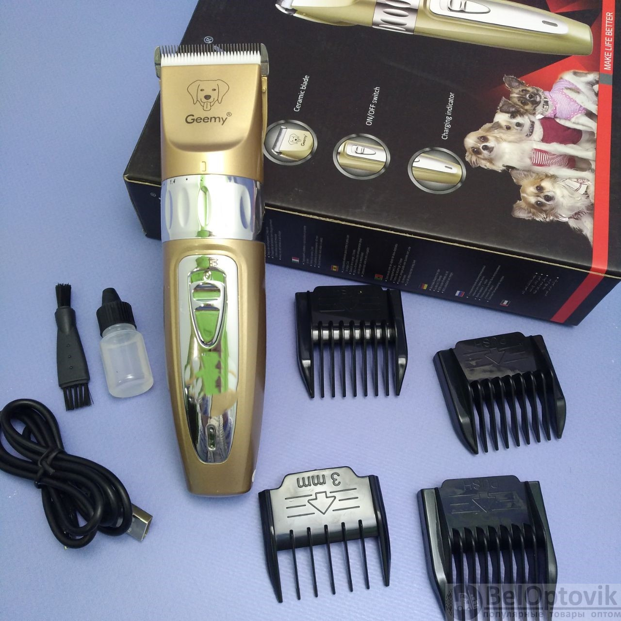 Почему купить Профессиональный набор триммер - машинка для стрижки домашних питомцев Geemy GM-635 / Грумер (4 насадки, регулировка длинны среза) / Машинка для груминга оптом выгодно у нас: