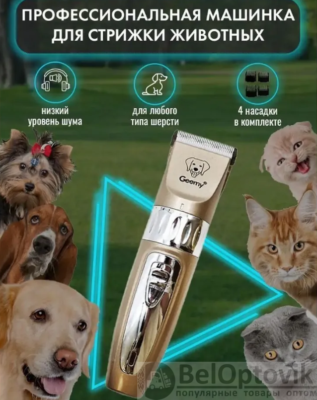 Купить Профессиональный набор триммер - машинка для стрижки домашних питомцев Geemy GM-635 / Грумер (4 насадки, регулировка длинны среза) / Машинка для груминга на нашем сайте можно ОПТОМ от 20 шт. или меньше, если Вы покупаете у нас и другие товары (сборный заказ).