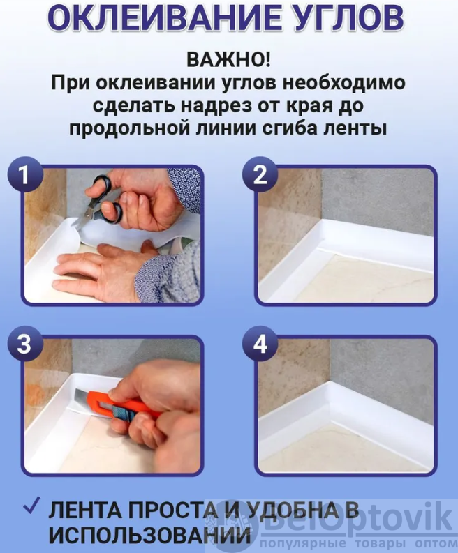 Купить ленту бордюрную влагостойкая Самоклеящаяся 20х3000 мм (кухня, ванна, туалет) Белая на нашем сайте можно ОПТОМ от 20 шт. или не менее 5, если Вы покупаете у нас и другие товары (сборный заказ).