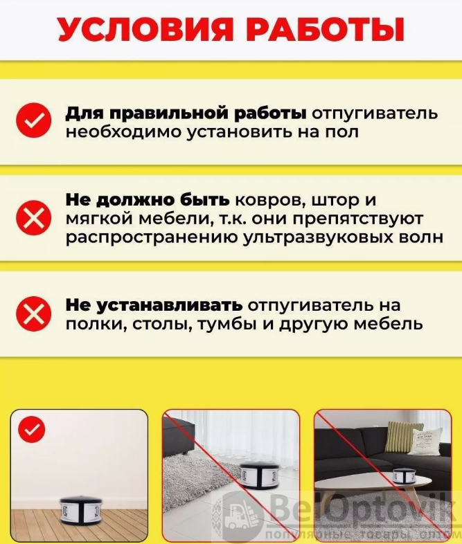 Ультразвуковой отпугиватель грызунов и насекомых генерирует и излучает мощные ультразвуковые волны высокой частоты. Они оказывают сильное воздействие на острый слух грызунов и насекомых — подобные высокочастотные звуки вызывают у них сильное чувство паники и срабатывание врожденного инстинкта самосохранения, в результате чего вредители стараются держаться подальше от источника "опасных" сигналов. При этом органы слуха людей и домашних животных на подобные УЗ сигналы не реагируют, то есть вы даже не будете замечать работающий с вами в одной комнате прибор!