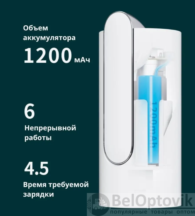 Помпа для воды имеет маленький вес и удобна в транспортировке, ее легко можно использовать на даче и в путешествии. Корпус создан из экологически чистых материалов и абсолютно безопасен для здоровья, не повредит стекло и крышку бутылки, качество и прочность материала гарантируют устойчивость к любым бытовым воздействиям. Встроенный аккумулятор ёмкостью 1200 мАч, позволит насладиться удобным и длительным использованием на одном заряде. Высококачественный литиевый аккумулятор рассчитан на выдачу (оборот) воды более 120 литров, это шесть бутылей по 19л.. Зарядка осуществляется через USB провод.