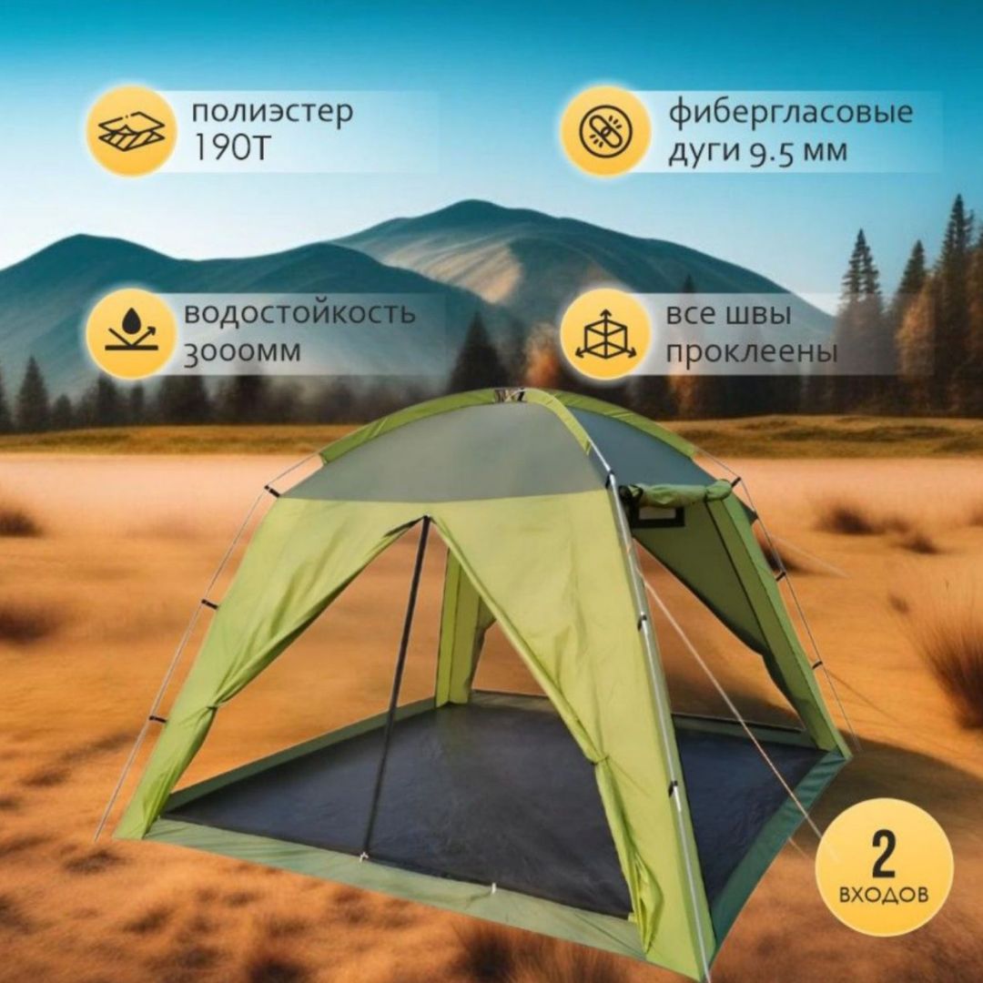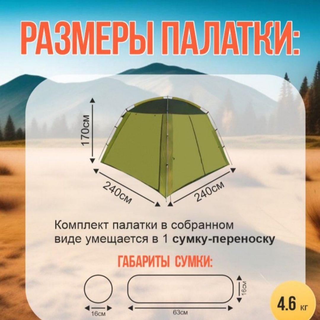 Что такое Палатка шатер 4-х местная, 240х240х170см
