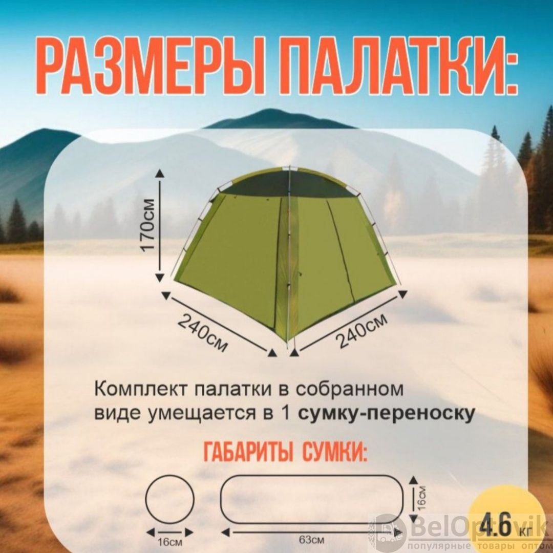 Почему купить Палатку шатер 4-х местная, 240х240х170см оптом выгодно у нас: