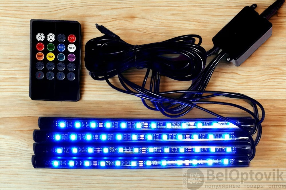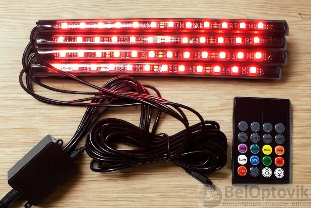 Купить светодиодная RGB подсветка салона авто со звуковым контроллером на нашем сайте можно ОПТОМ от 20 шт. или меньше, если Вы покупаете у нас и другие товары (сборный заказ).