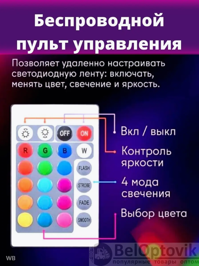 Почему купить Светодиодная RGB лента с пультом, 16 цветов, 5 метров / Подсветка для комнаты, автомобиля оптом выгодно у нас: