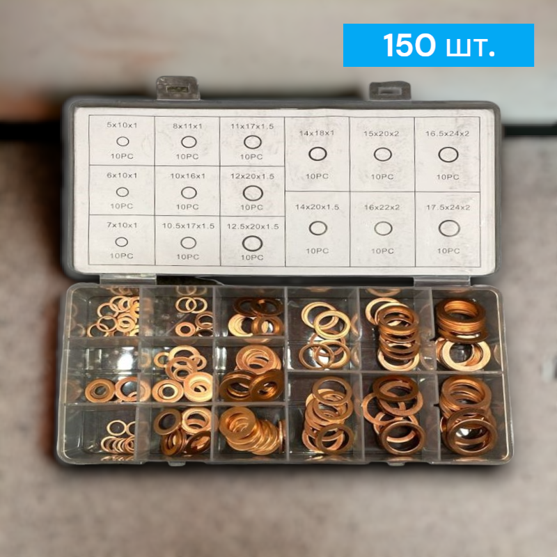 Набор медных шайб 150 штук – это комплект из 150 круглых шайб, изготовленных из меди. Медные шайбы широко используются в строительстве и машиностроении для установки и крепления различных деталей.