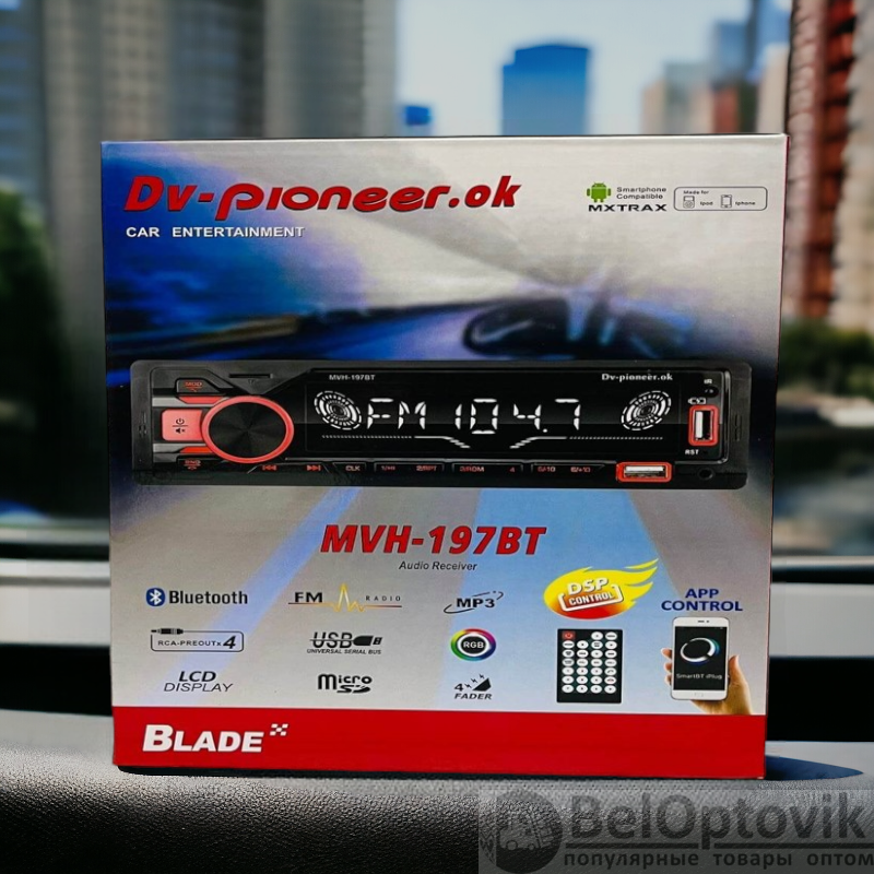 Автомагнитола Pioneer MVH-196-198 — это одинарные (1 DIN) автомобильные магнитолы с поддержкой Bluetooth. Они предоставляют возможность прослушивания музыки через Bluetooth со смартфона или другого устройства, а также имеют встроенный радиоприемник.