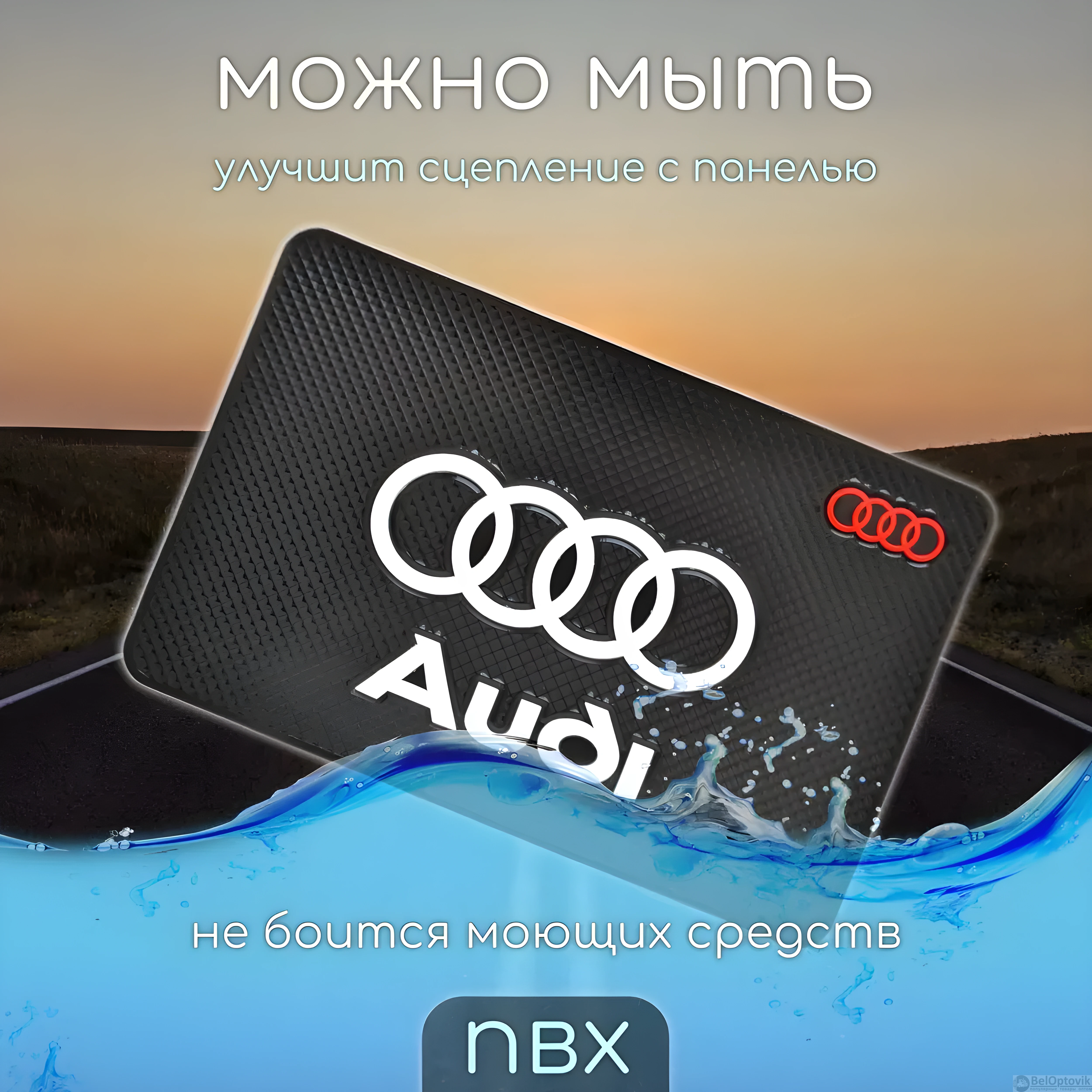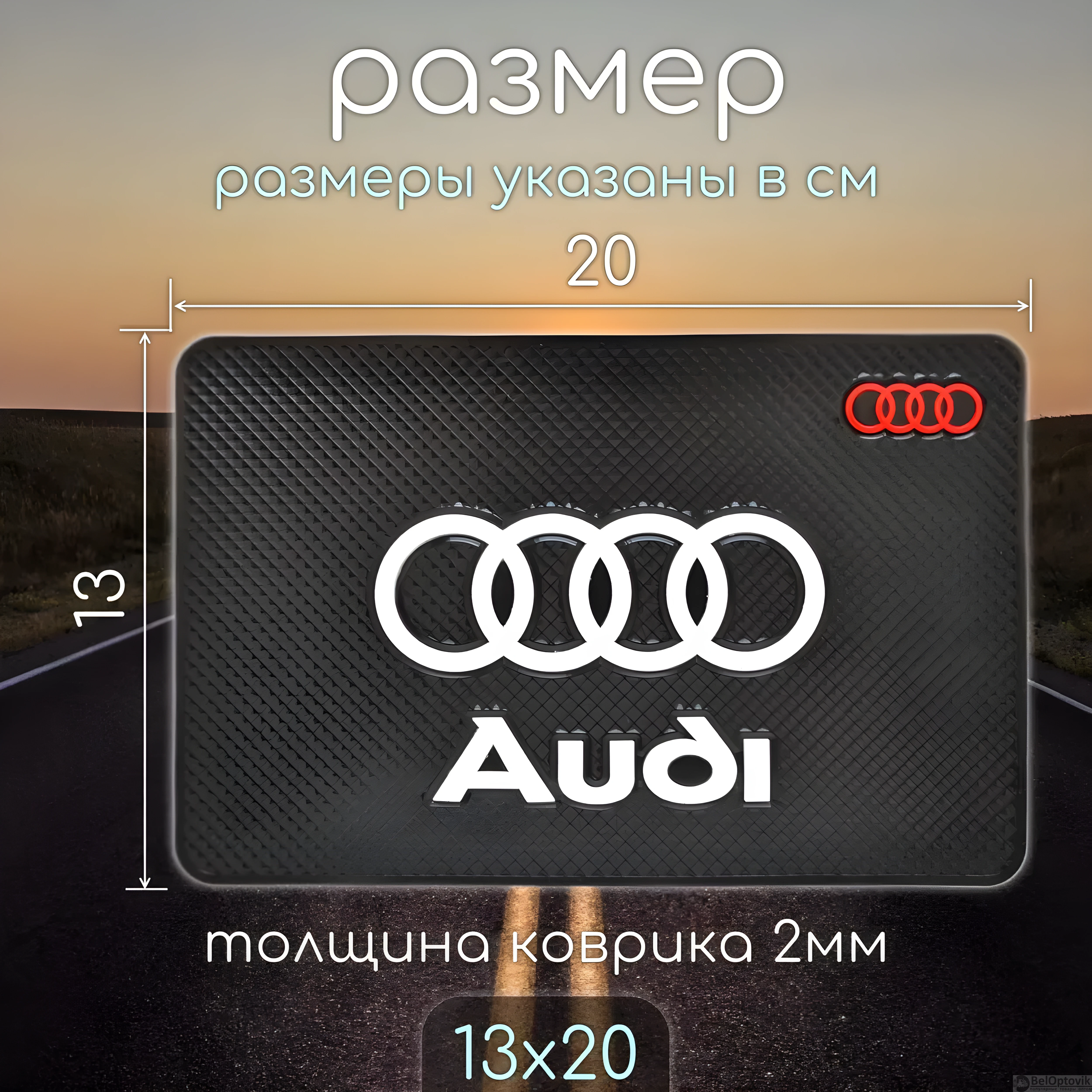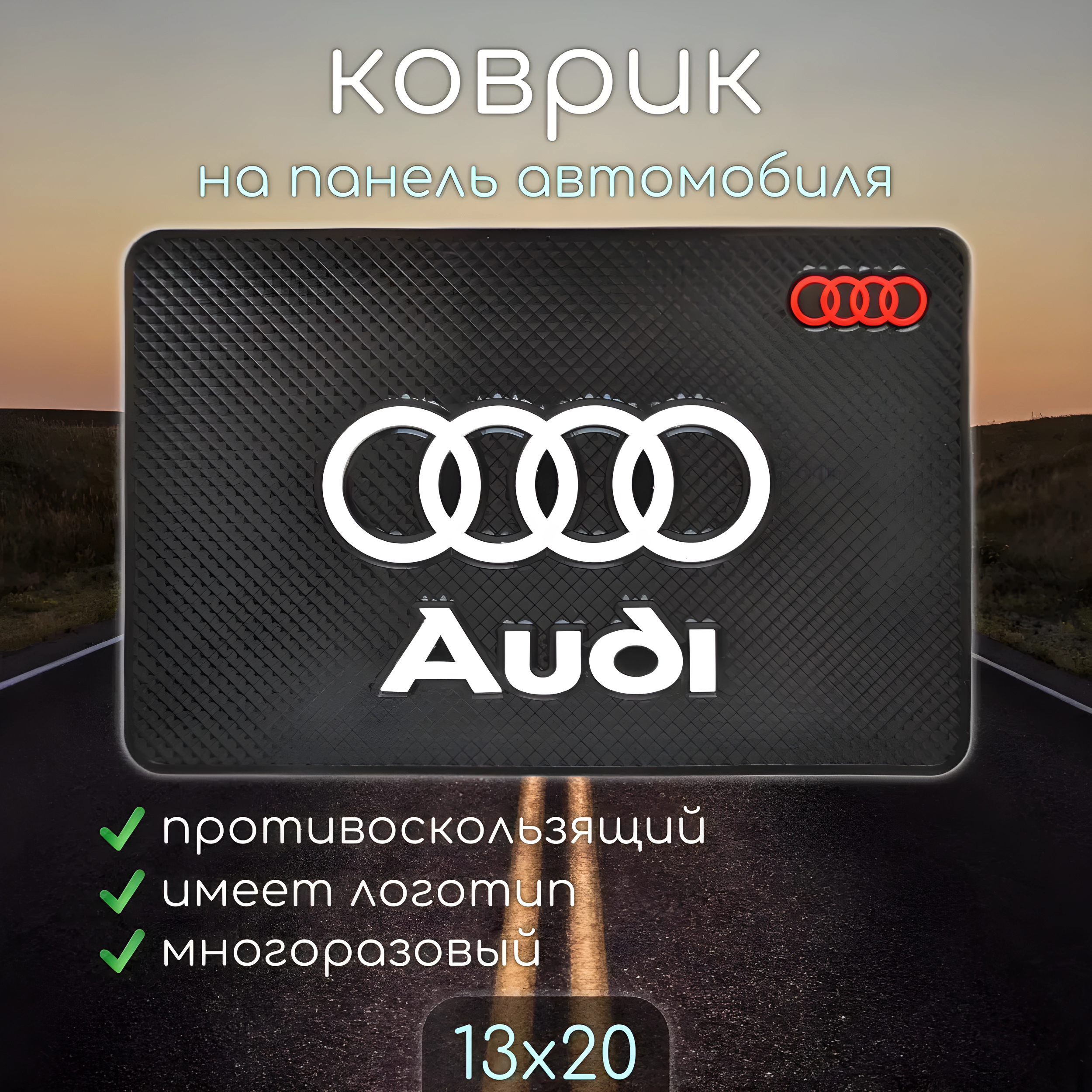 Купить Противоскользящий коврик на панель автомобиля с логотипом AUDI / Не боится солнечных лучей, не оставляет следов, не плавится на нашем сайте можно ОПТОМ от 20 шт. или меньше, если Вы покупаете у нас и другие товары (сборный заказ).