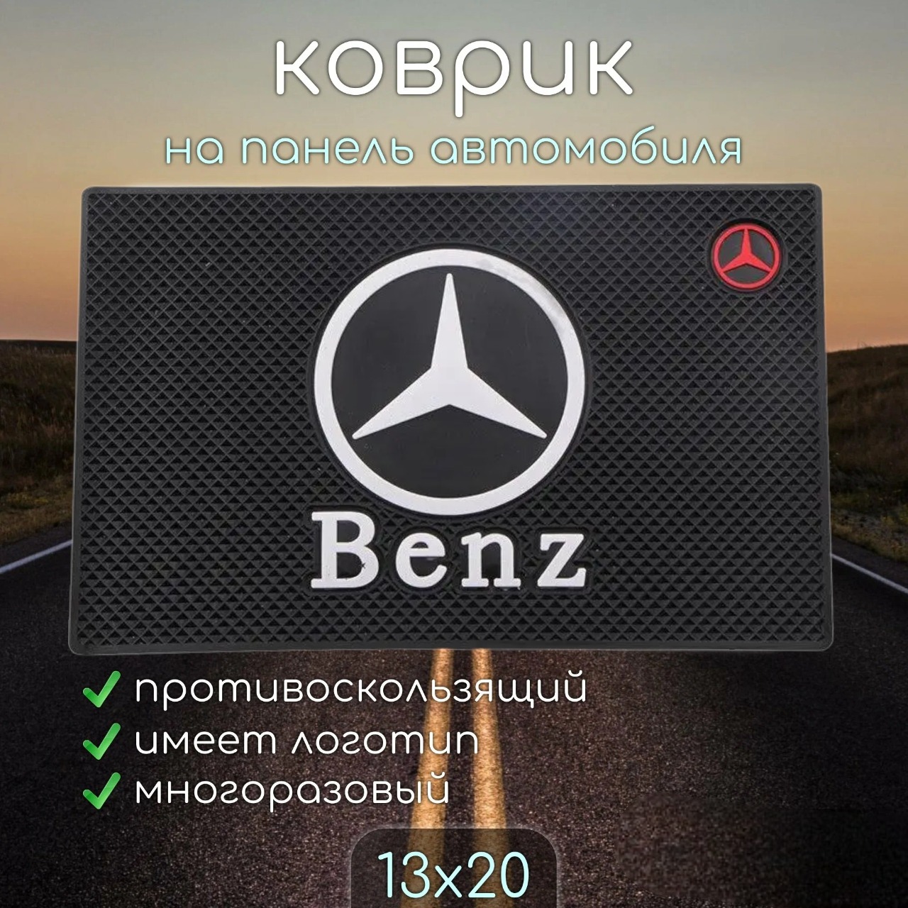 Противоскользящий коврик на панель автомобиля с логотипом BENZ – это не только стильный аксессуар, который добавит индивидуальности интерьеру вашего авто, но и высокотехнологичное устройство, обеспечивающее безопасность и удобство в использовании. Современные технологии позволили создать материал, который обладает уникальными антискользящими свойствами, благодаря чему смартфон или планшет будет надежно зафиксирован на панели даже при интенсивном движении.
