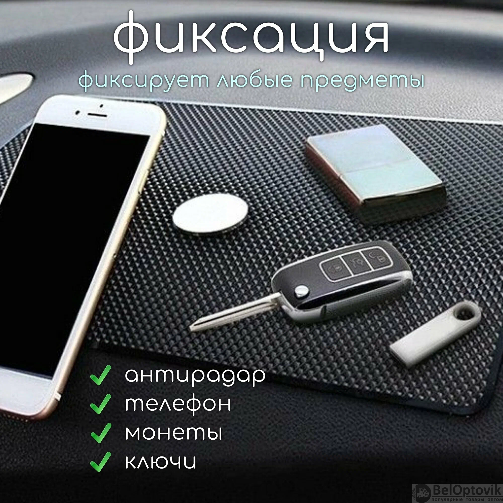 Кроме того, коврик можно использовать не только как держатель для телефона или планшета, но и для размещения других мелких предметов, таких как ключи, очки или кошелек, которые всегда будут под рукой и не потеряются в салоне автомобиля. Это делает коврик многофункциональным аксессуаром, который будет полезен каждому водителю.