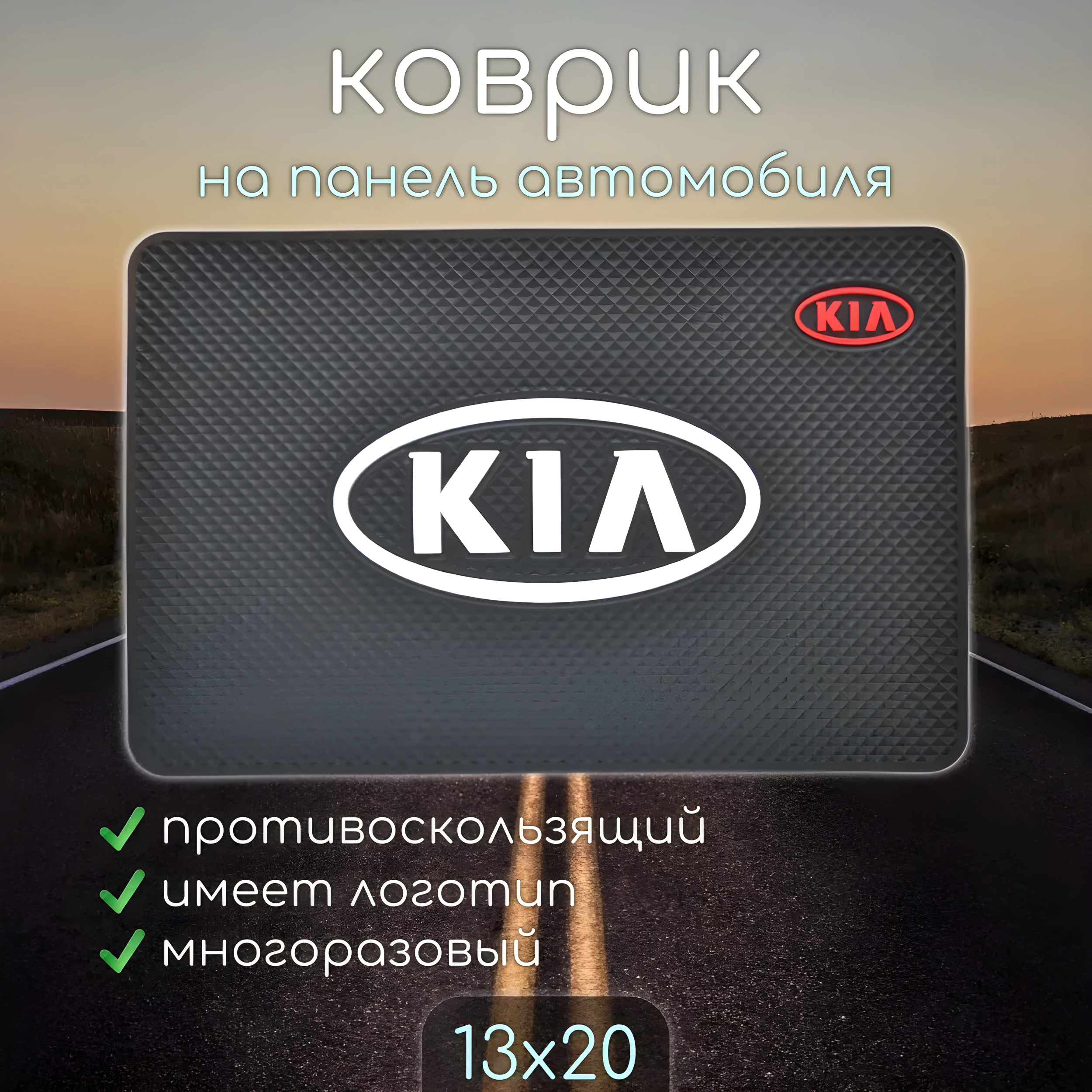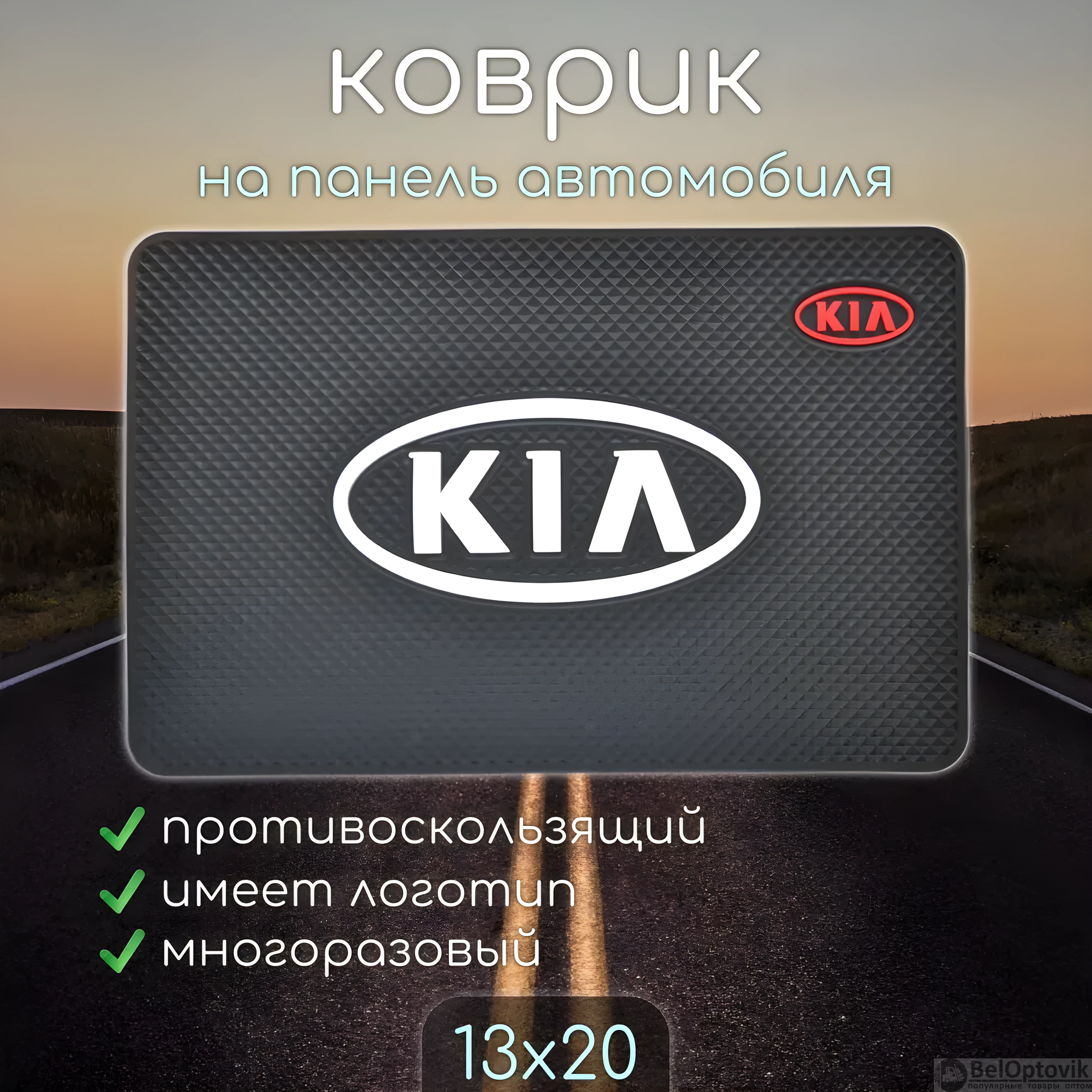 Купить Противоскользящий коврик на панель автомобиля с логотипом KIA / Держатель для телефона и других предметов на нашем сайте можно ОПТОМ от 20 шт. или меньше, если Вы покупаете у нас и другие товары (сборный заказ).