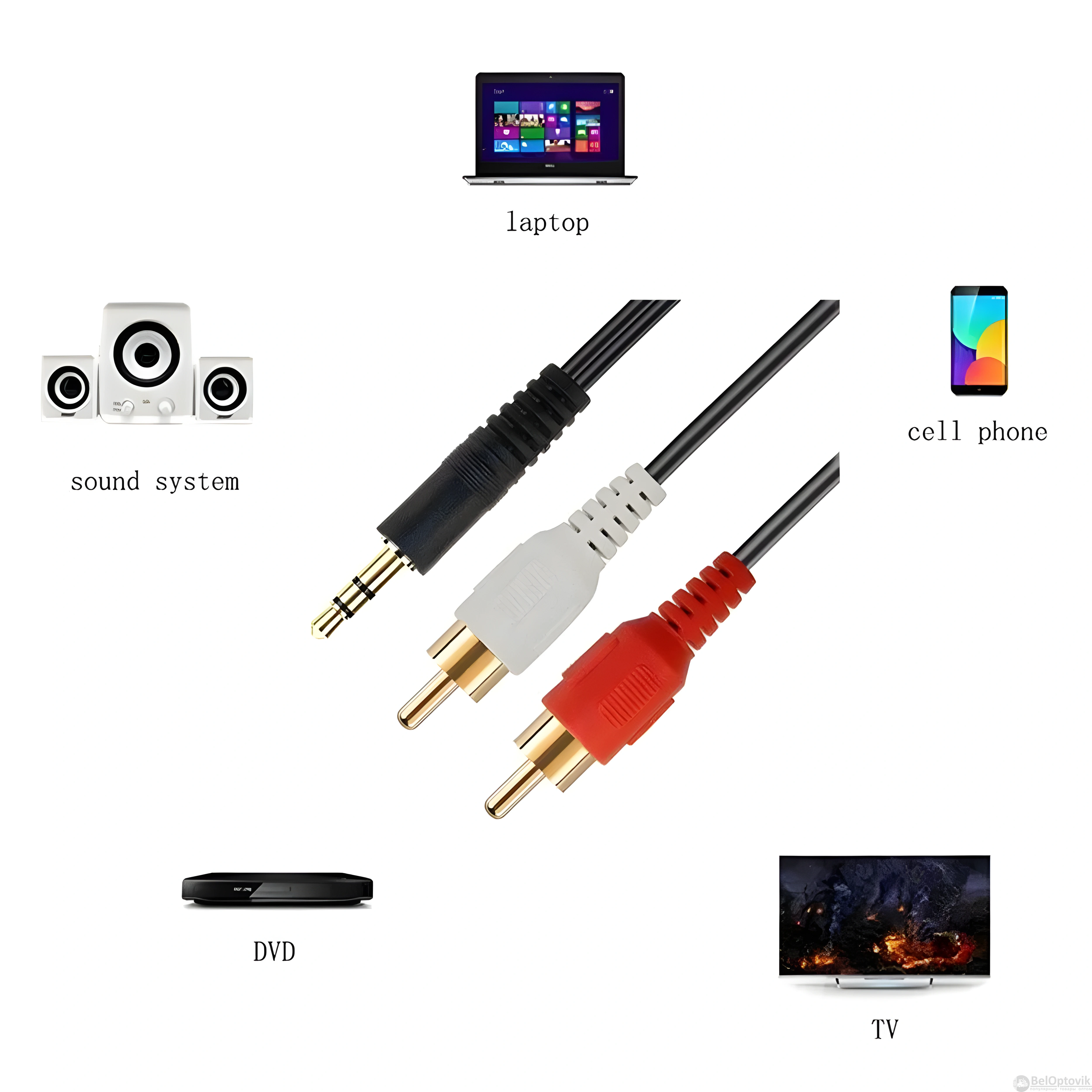 Почему купить Аудиокабель 2x RCA – jack 3.5 mm / Для подключения MP3-плееров, автомобильных стерео систем оптом выгодно у нас: