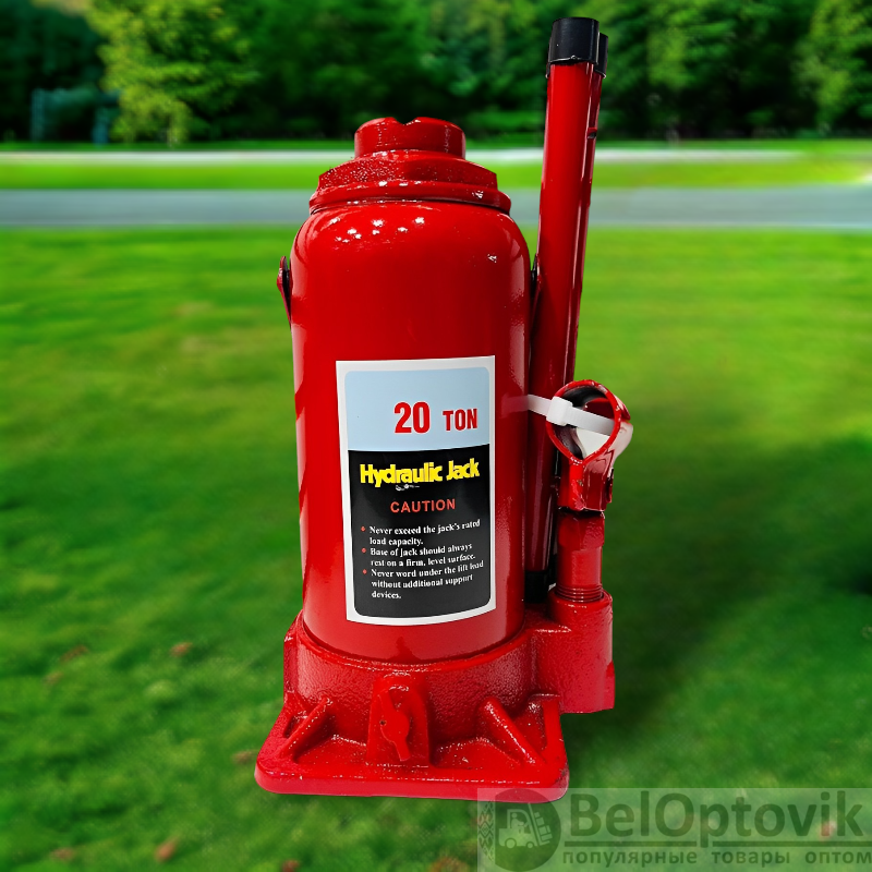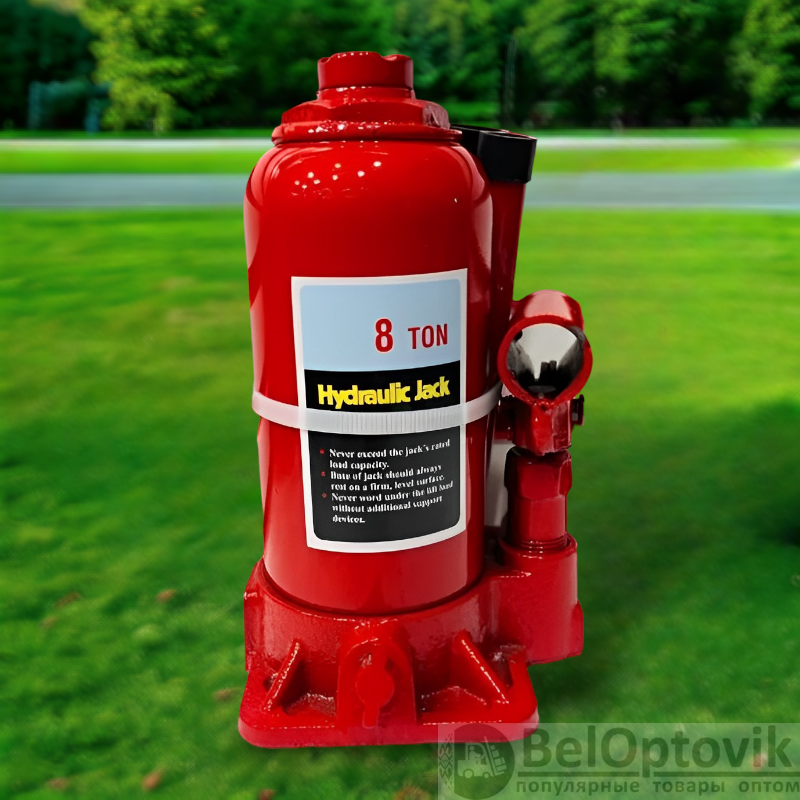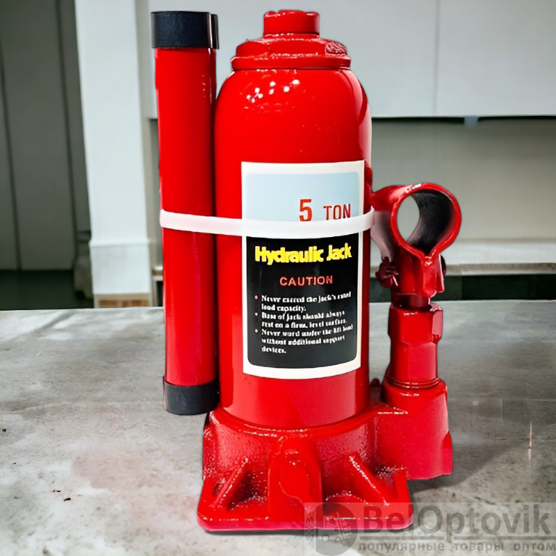 Бутылочный гидравлический домкрат - это инструмент, который используется для поднятия тяжелых предметов, например автомобилей. Он состоит из гидравлического цилиндра, который поднимает груз при помощи давления жидкости, и тяги, которая устанавливается между грузом и цилиндром.