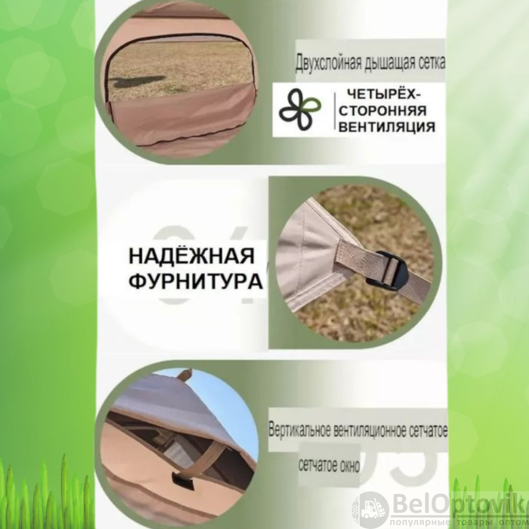 - Двойные двери на молнии: Удобный вход и выход с разных сторон палатки.