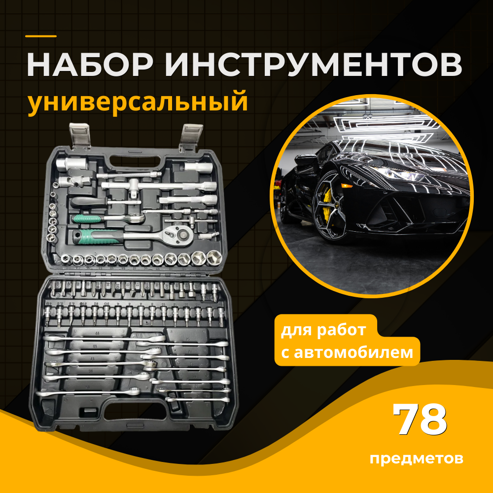 Этот набор инструментов для автомобиля — настоящая находка для водителя. В нём собраны все необходимые инструменты, которые могут понадобиться в дороге, дома или на даче. Набор включает в себя 78 предметов: от головок с трещоткой до шестигранников и воротков, что делает его идеальным выбором для широкого спектра задач. Инструменты изготовлены из высококачественного металла, обеспечивающего их долговечность и надёжность в использовании.