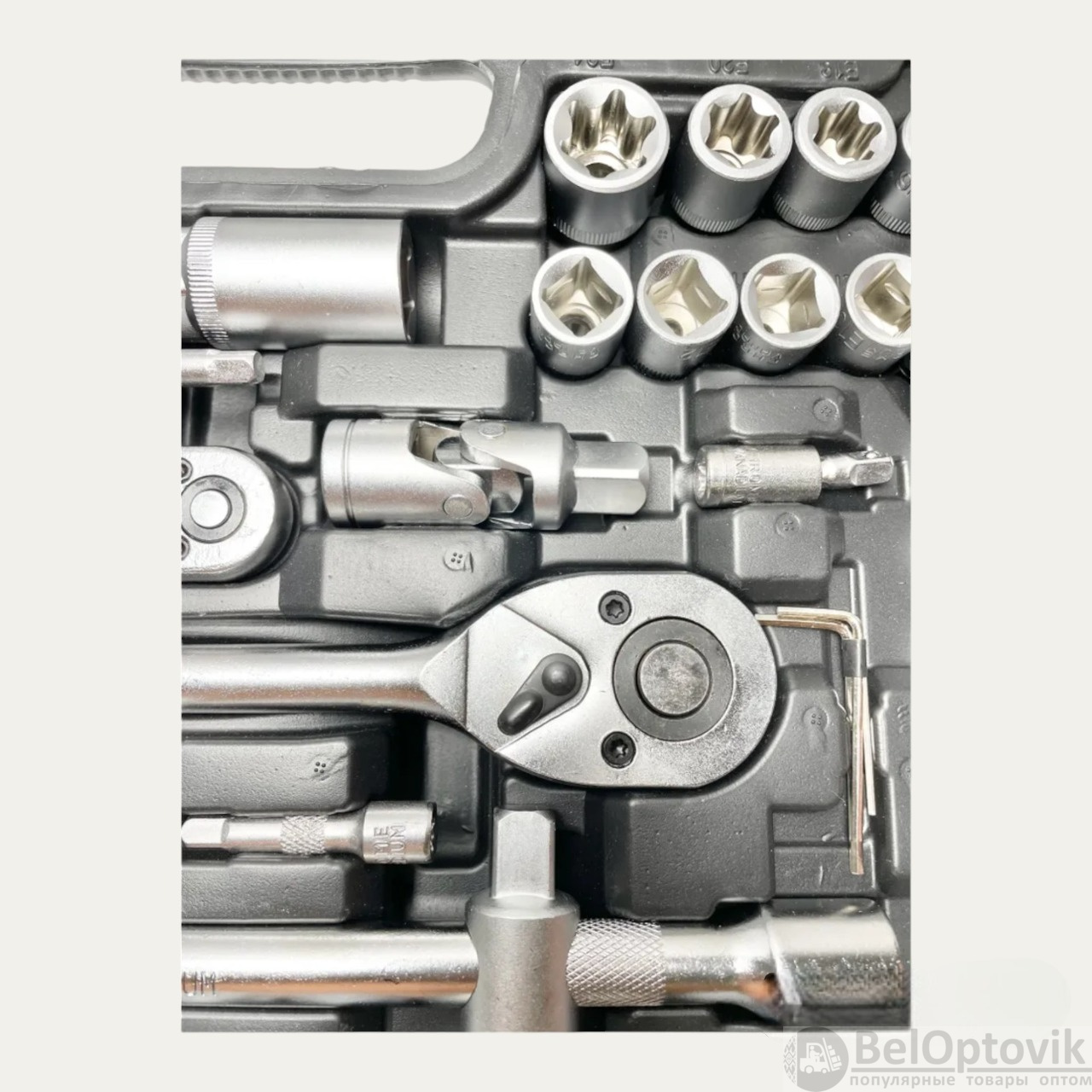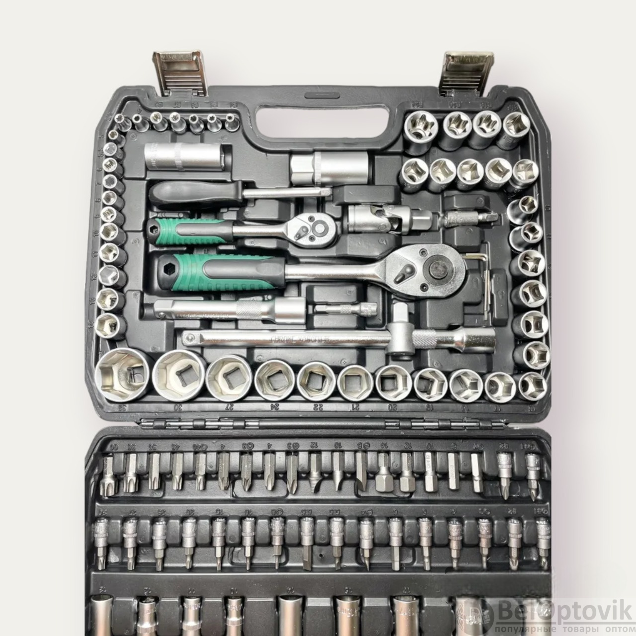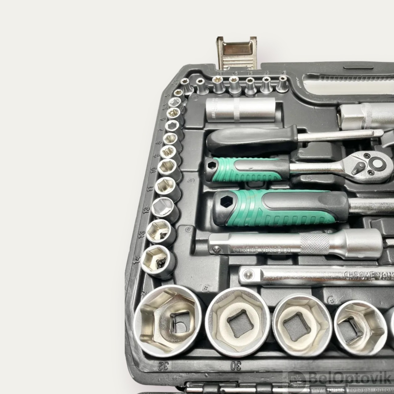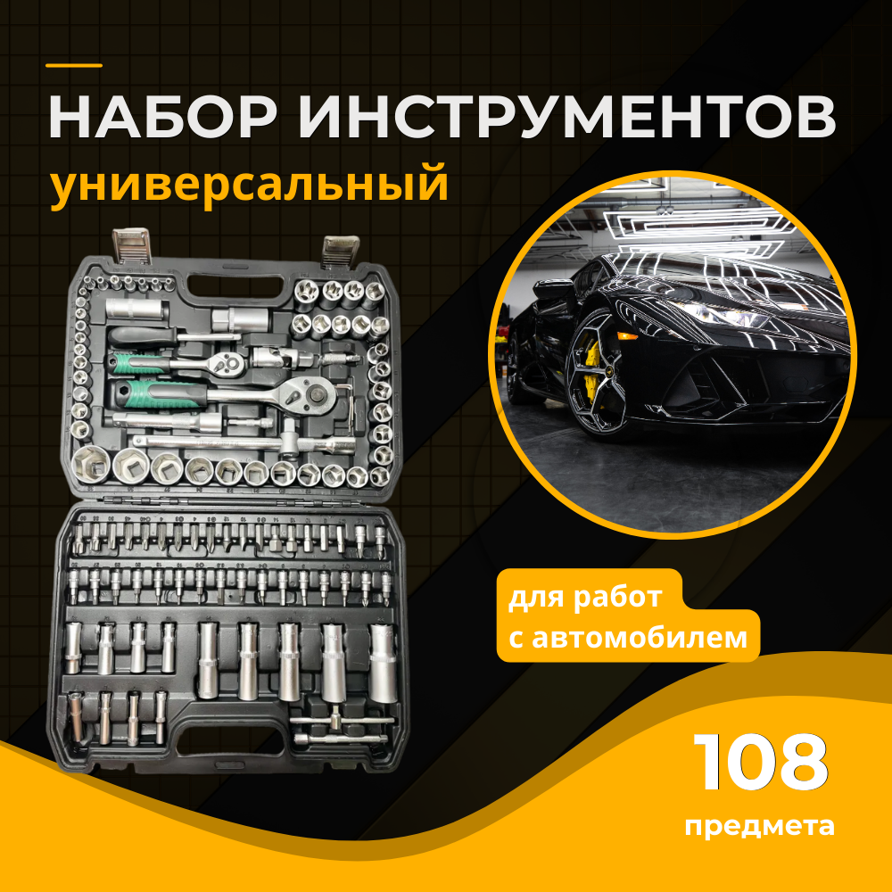 Этот набор инструментов для автомобиля - настоящая находка для водителей и мастеров, которые ценят качество, надежность и универсальность. В комплект входит 108 предметов, включая головки с трещоткой, вороток и шестигранники, что делает его идеальным для широкого спектра задач, от простого обслуживания автомобиля до сложных ремонтных работ. Каждый инструмент изготовлен из высококачественного прочного металла, обеспечивающего долговечность и надежность в использовании.