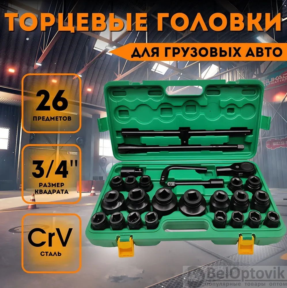 Купить Набор торцевых головок для грузовика 21-65 мм, трещотка 3/4", 26 предметов на нашем сайте можно ОПТОМ от 20 шт. или меньше, если Вы покупаете у нас и другие товары (сборный заказ).