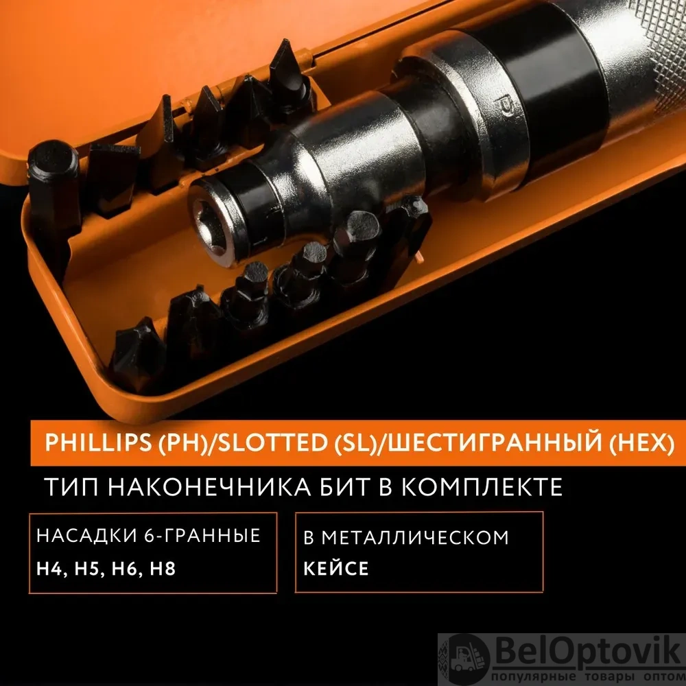 Почему купить Ударная отвертка с набором бит 12 шт, металлический кейс / Многофункциональная отвертка с практичным металлическим кейсом оптом выгодно у нас: