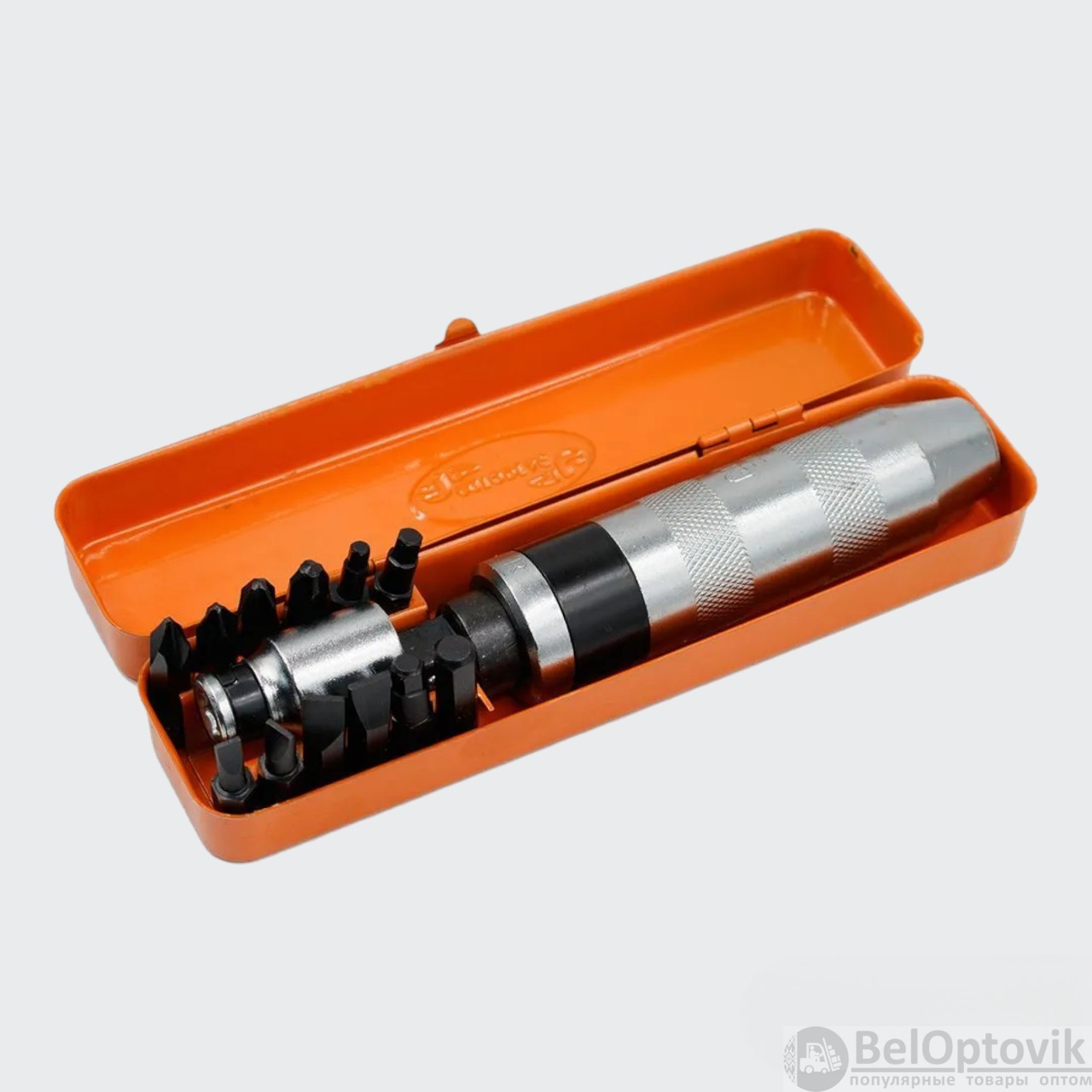 Купить Ударная отвертка с набором бит 12 шт, металлический кейс / Многофункциональная отвертка с практичным металлическим кейсом на нашем сайте можно ОПТОМ от 20 шт. или меньше, если Вы покупаете у нас и другие товары (сборный заказ).