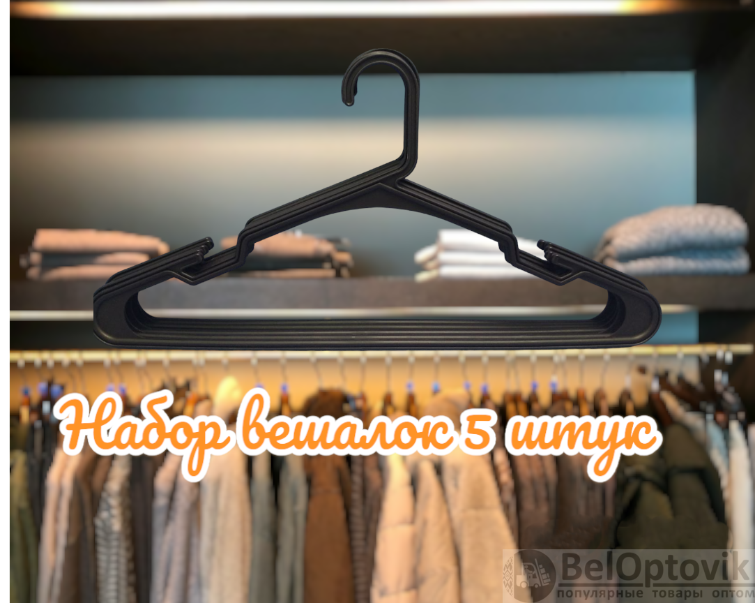 Купить Набор вешалок (плечиков) гардеробных 5 шт. / Вешалка пластиковая универсальная на нашем сайте можно ОПТОМ от 10 шт. или меньше, если Вы покупаете у нас и другие товары (сборный заказ).