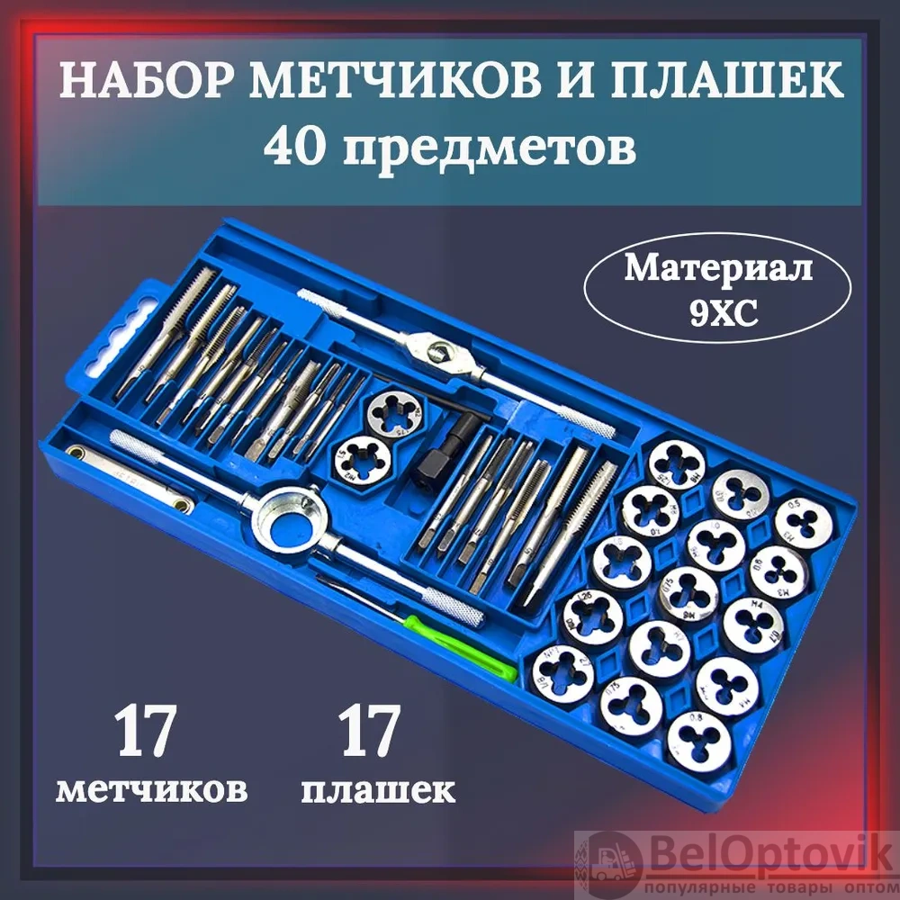 Купить Набор метчиков и плашек, 40 предметов / Для резьбонарезных работ по металлу на нашем сайте можно ОПТОМ от 20 шт. или меньше, если Вы покупаете у нас и другие товары (сборный заказ).
