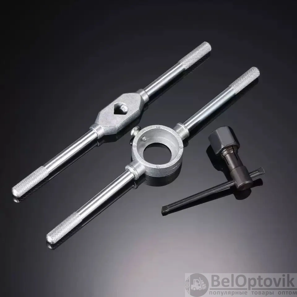 В дополнение к основным характеристикам, набор также включает держатели для метчиков, минимальный диаметр которых составляет М1, что позволяет работать с мелкими деталями, требующими особой точности. Эргономичная конструкция ручек держателей обеспечивает комфортное и надежное захватывание, минимизируя усталость при длительной работе.