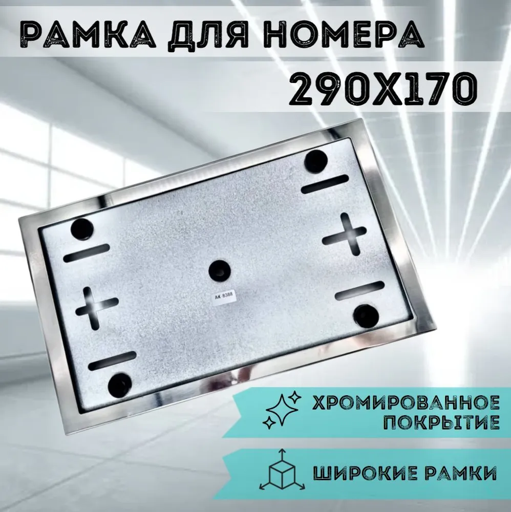 - Размеры: Размер рамки составляет 290х170 мм, что оптимизировано для установки на стандартные номера.