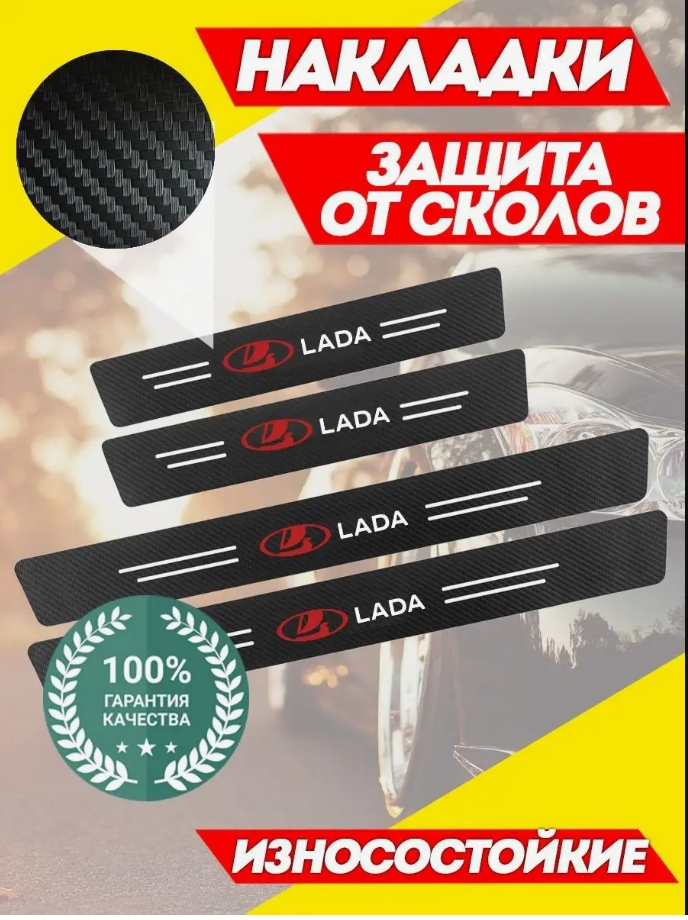 Купить Карбоновые наклейки на пороги авто Lada / Защищают от царапин и потертостей на нашем сайте можно ОПТОМ от 20 шт. или меньше, если Вы покупаете у нас и другие товары (сборный заказ).