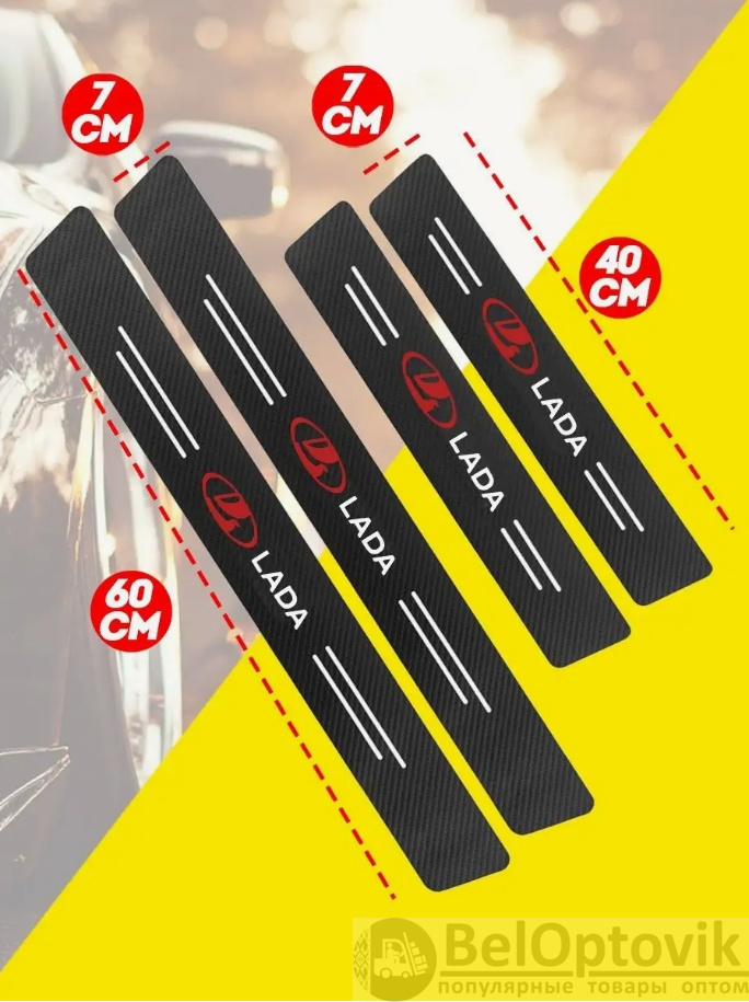 Почему купить Карбоновые наклейки на пороги авто Lada / Защищают от царапин и потертостей оптом выгодно у нас: